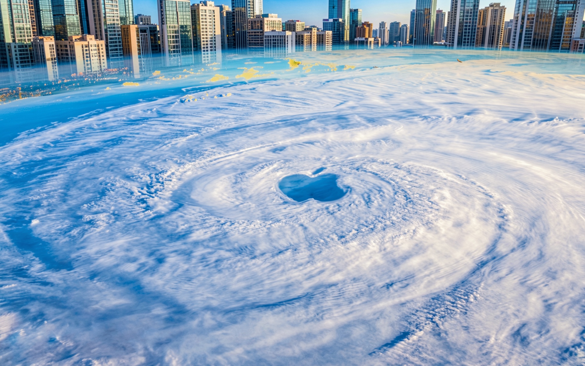 Логотип Apple в центре белого урагана