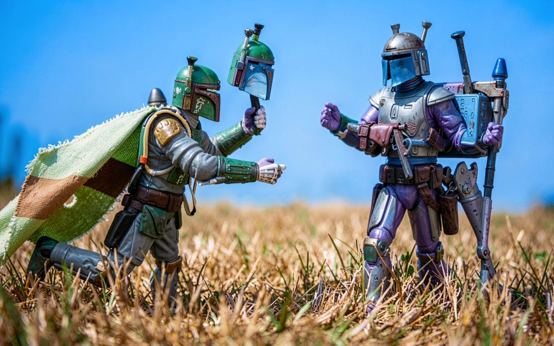 Фигурки Боба Фетта и Джанго Фетта в поле