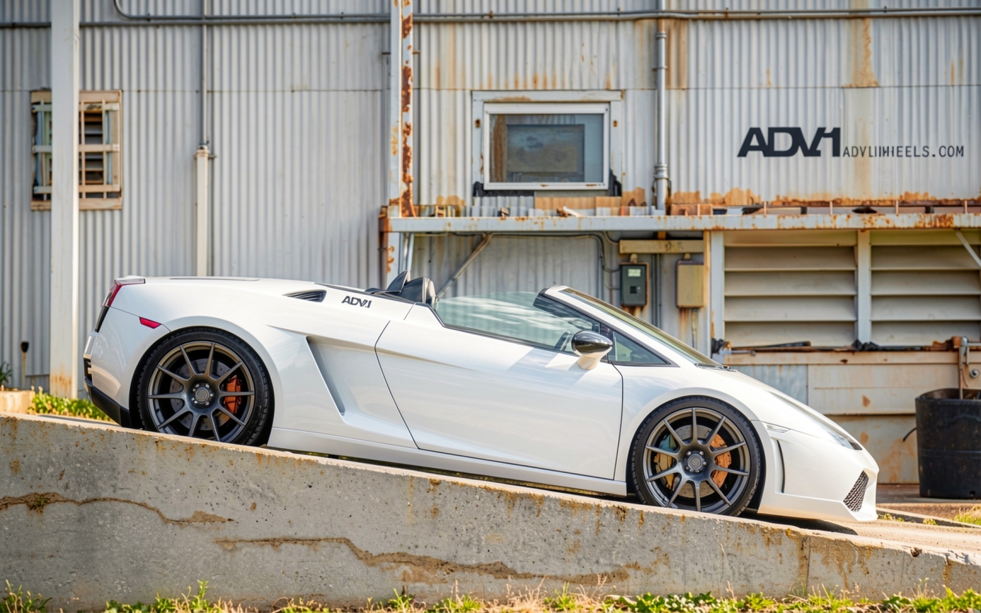 Белый суперкар Lamborghini Huracan на фоне завода