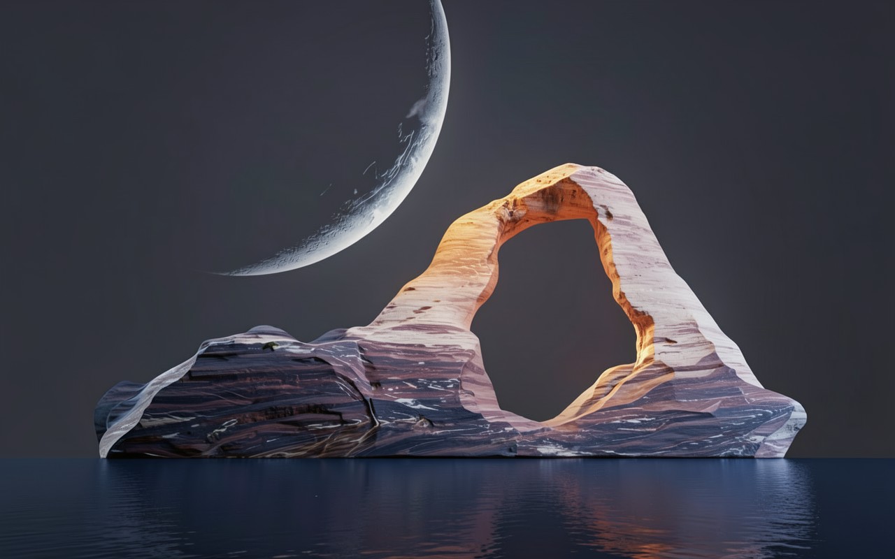 Каменная арка на темном фоне с луной