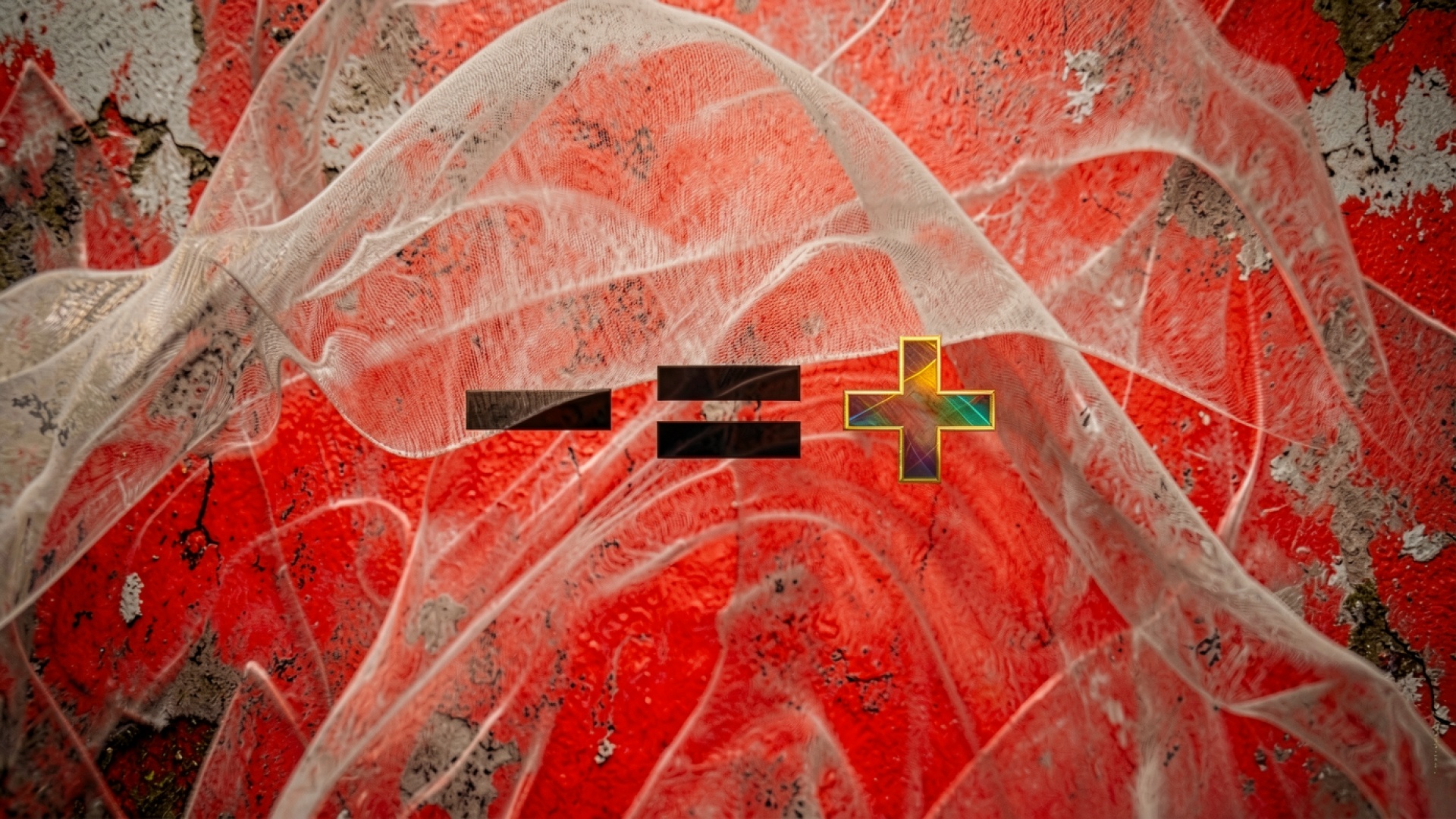 Абстрактные символы на красном фоне с тканью