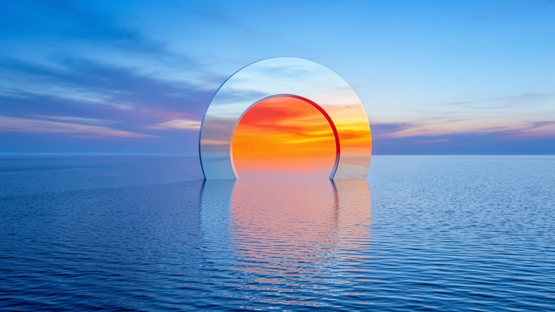 Футуристическое кольцо в синем океане на закате