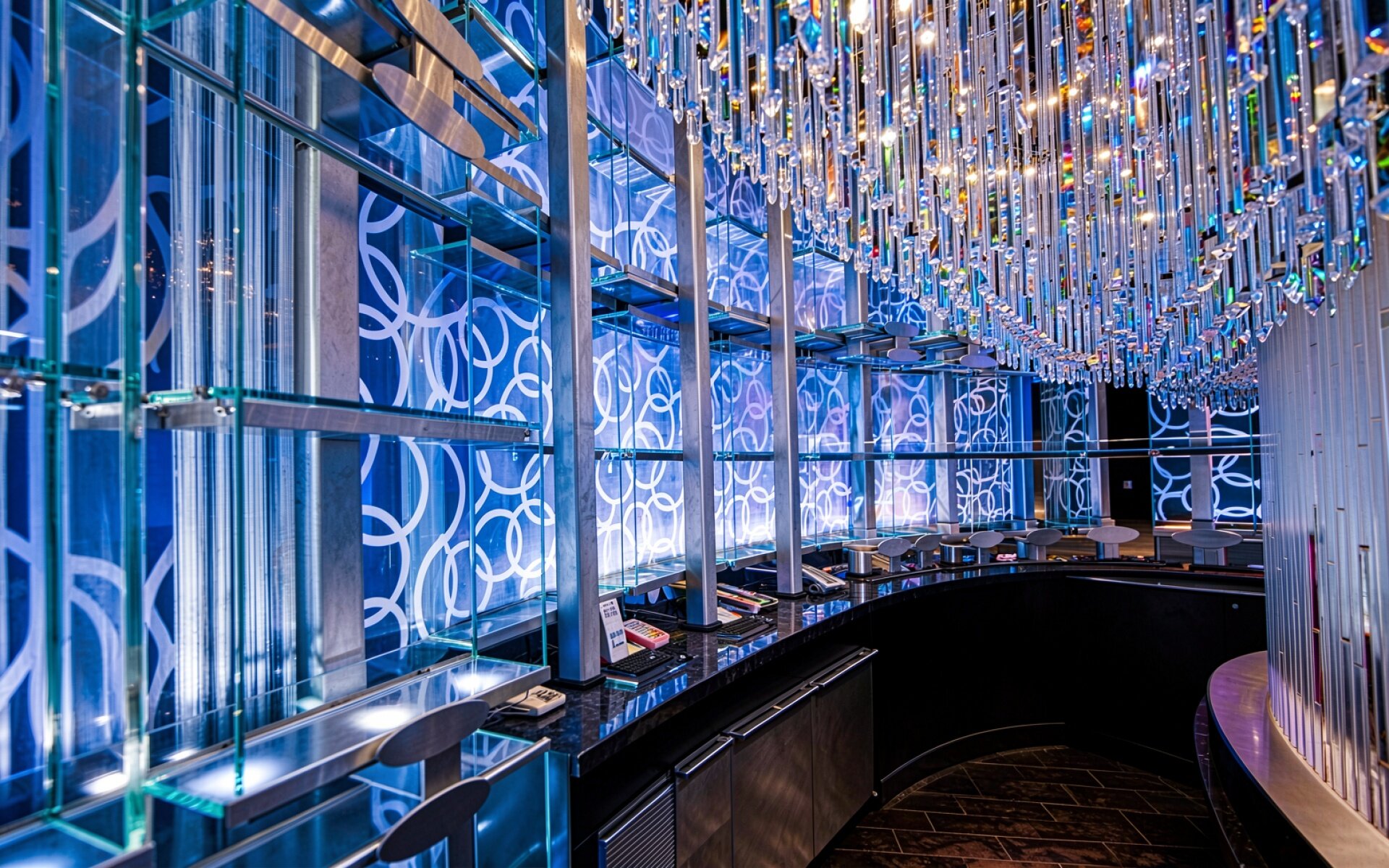 Интерьер футуристичного бара синий неоновый свет