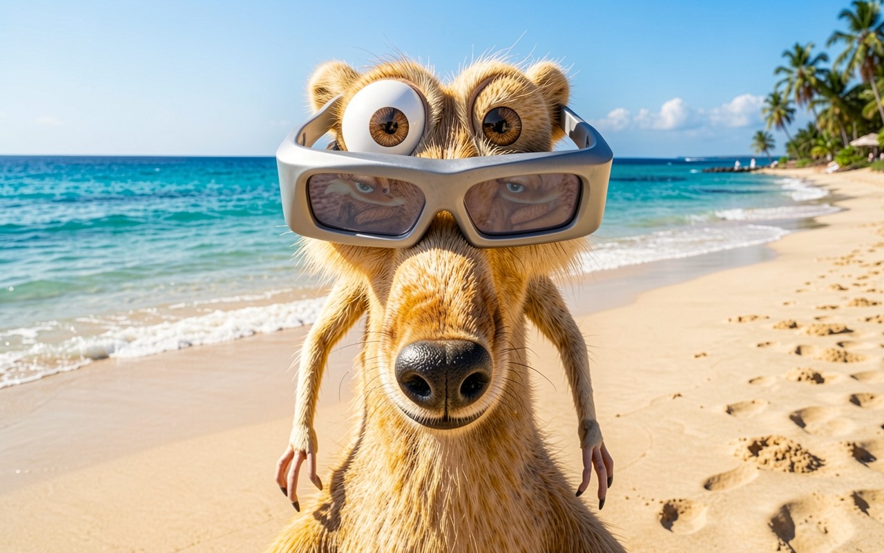 Рыжий сурикат в футуристичных очках на пляже