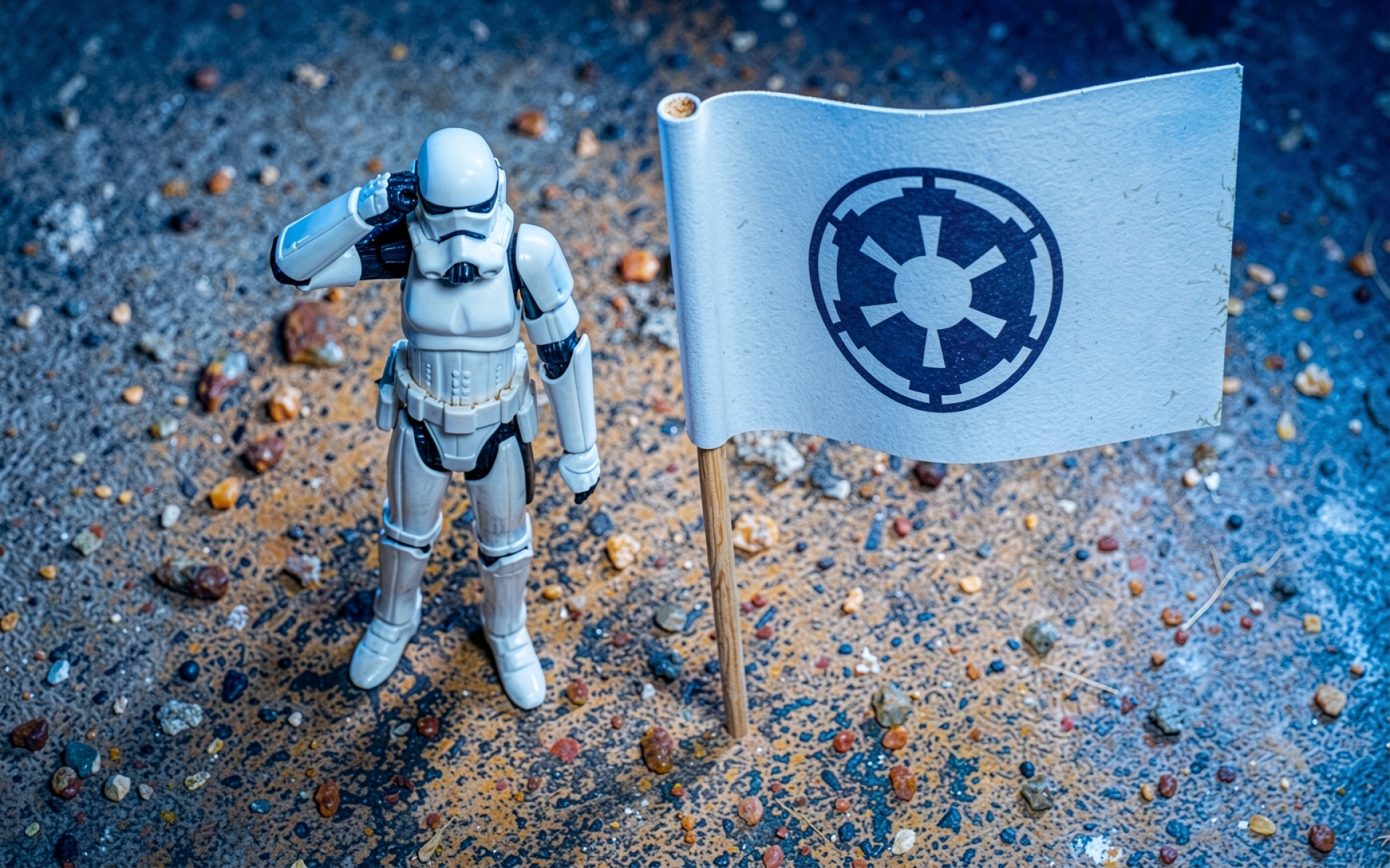 Штурмовик с флагом Империи холодный индустриальный стиль