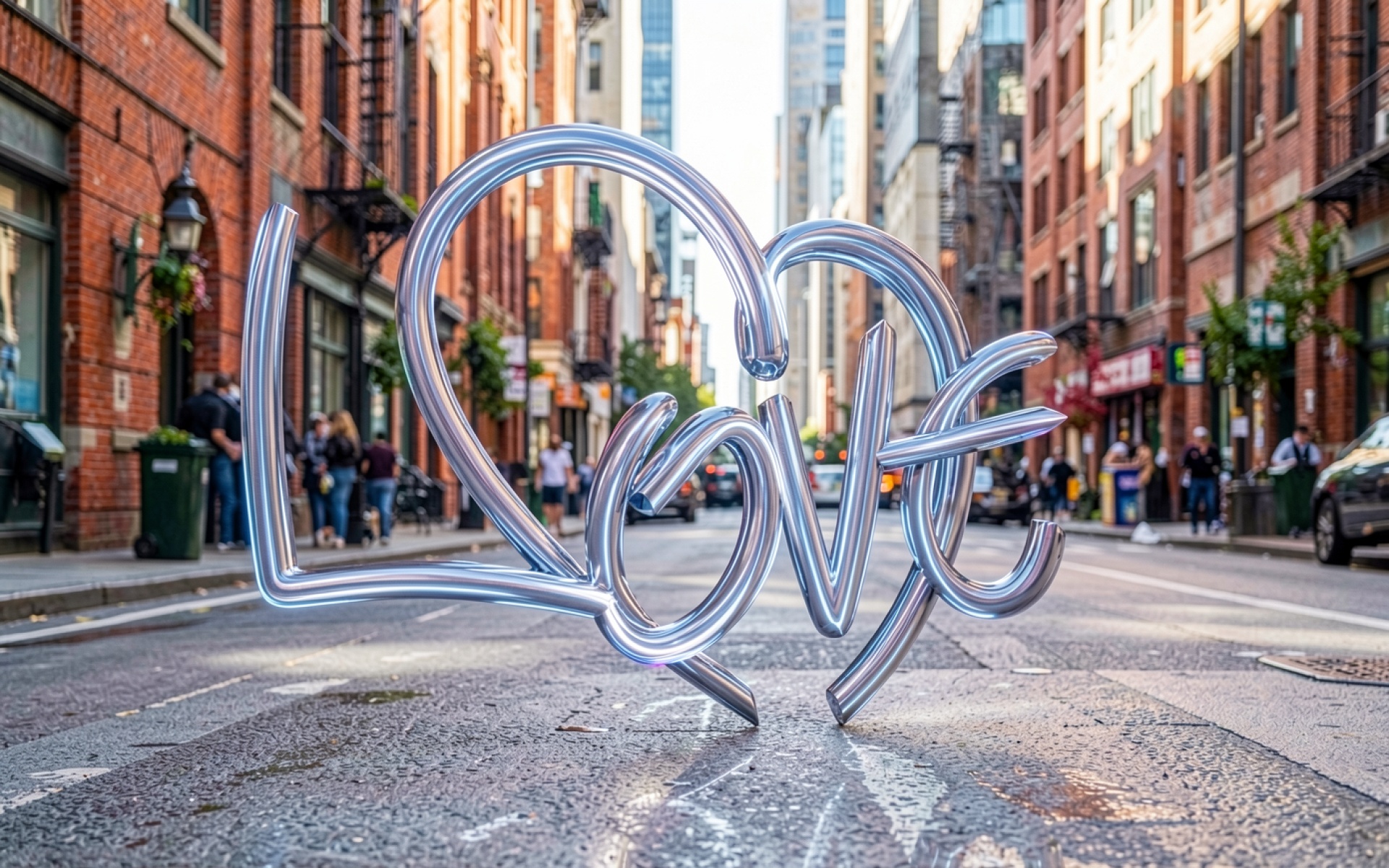 Хромированная скульптура Love на городской улице