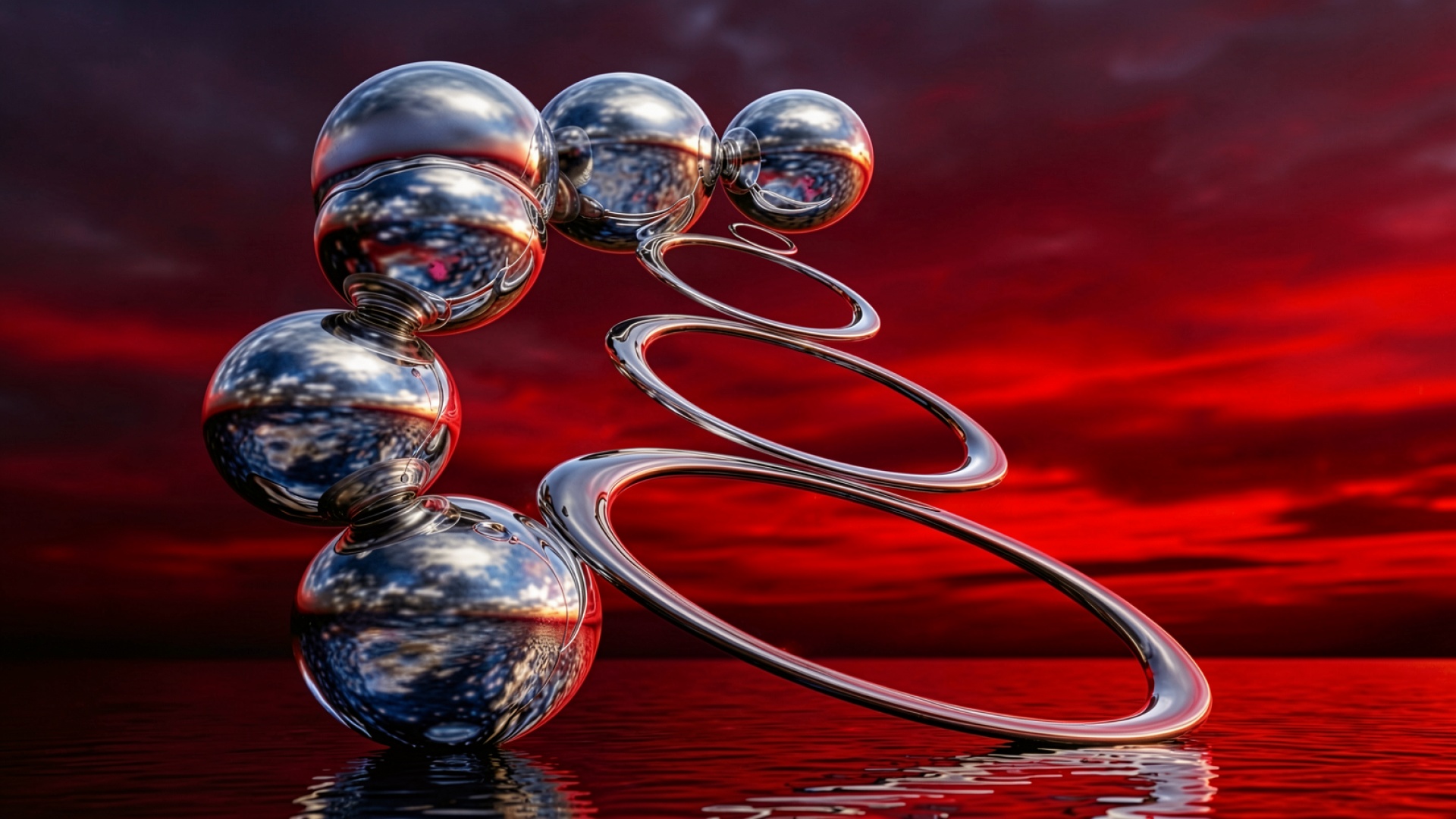 Хромированные сферы и кольца на красном фоне