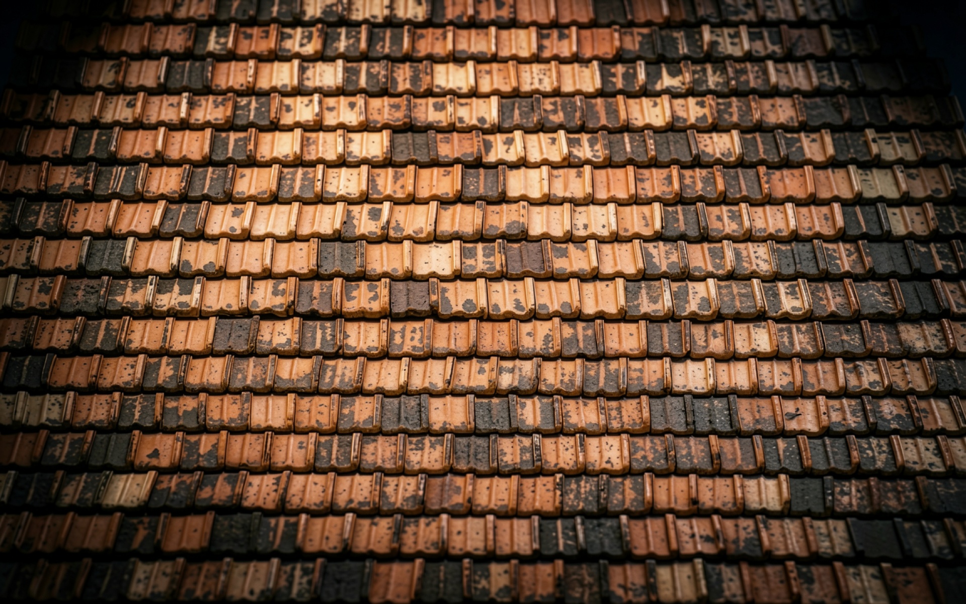 Старая терракотовая черепица коричневого цвета вблизи