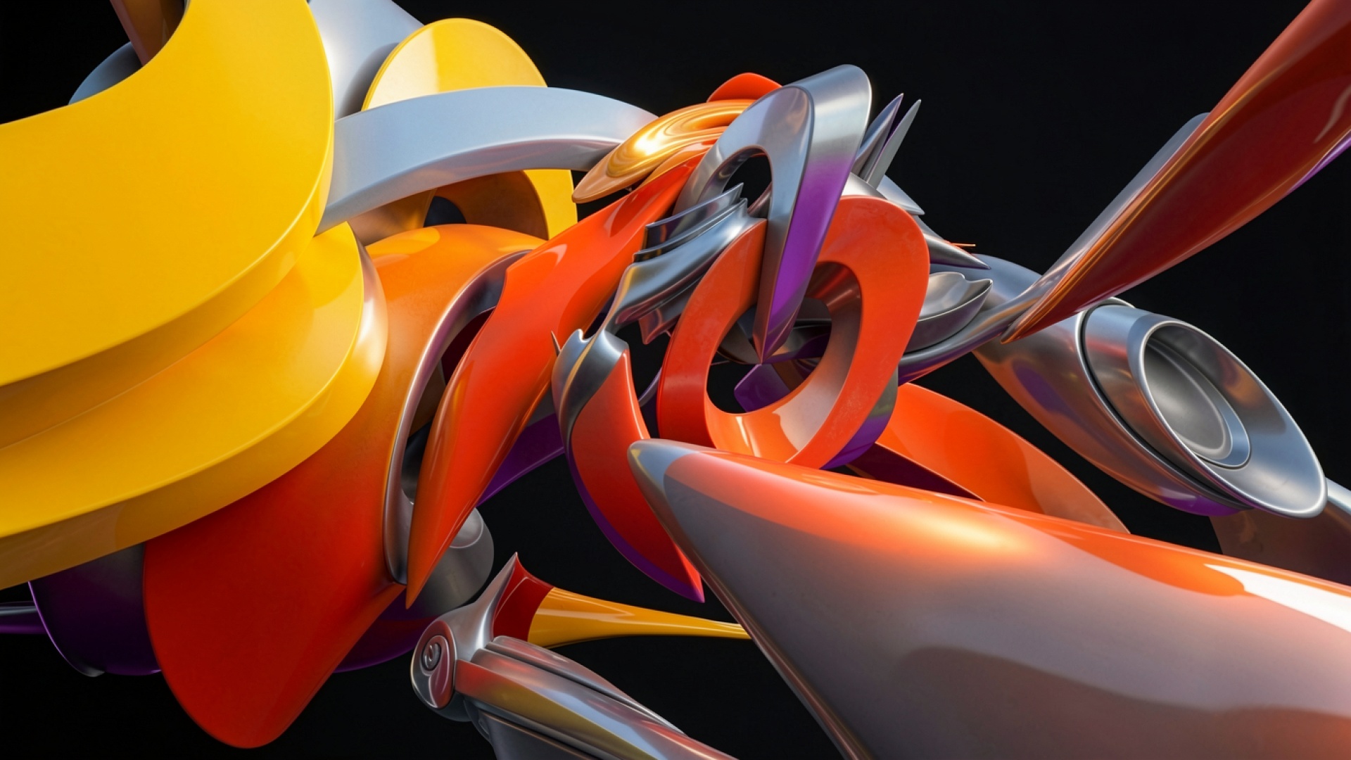 Абстрактные глянцевые фигуры желтого и оранжевого цвета