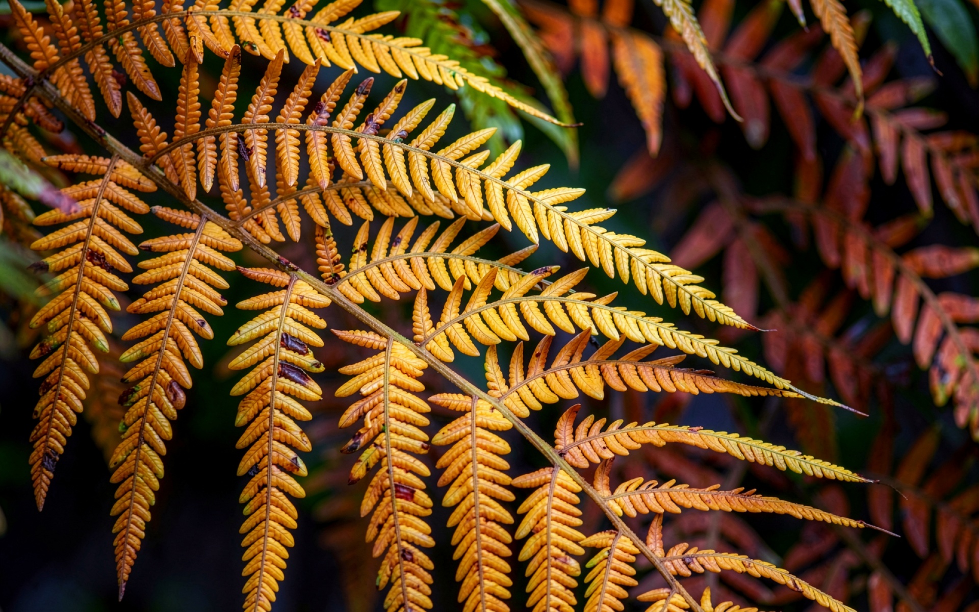 Осенний папоротник желто-оранжевого цвета макро