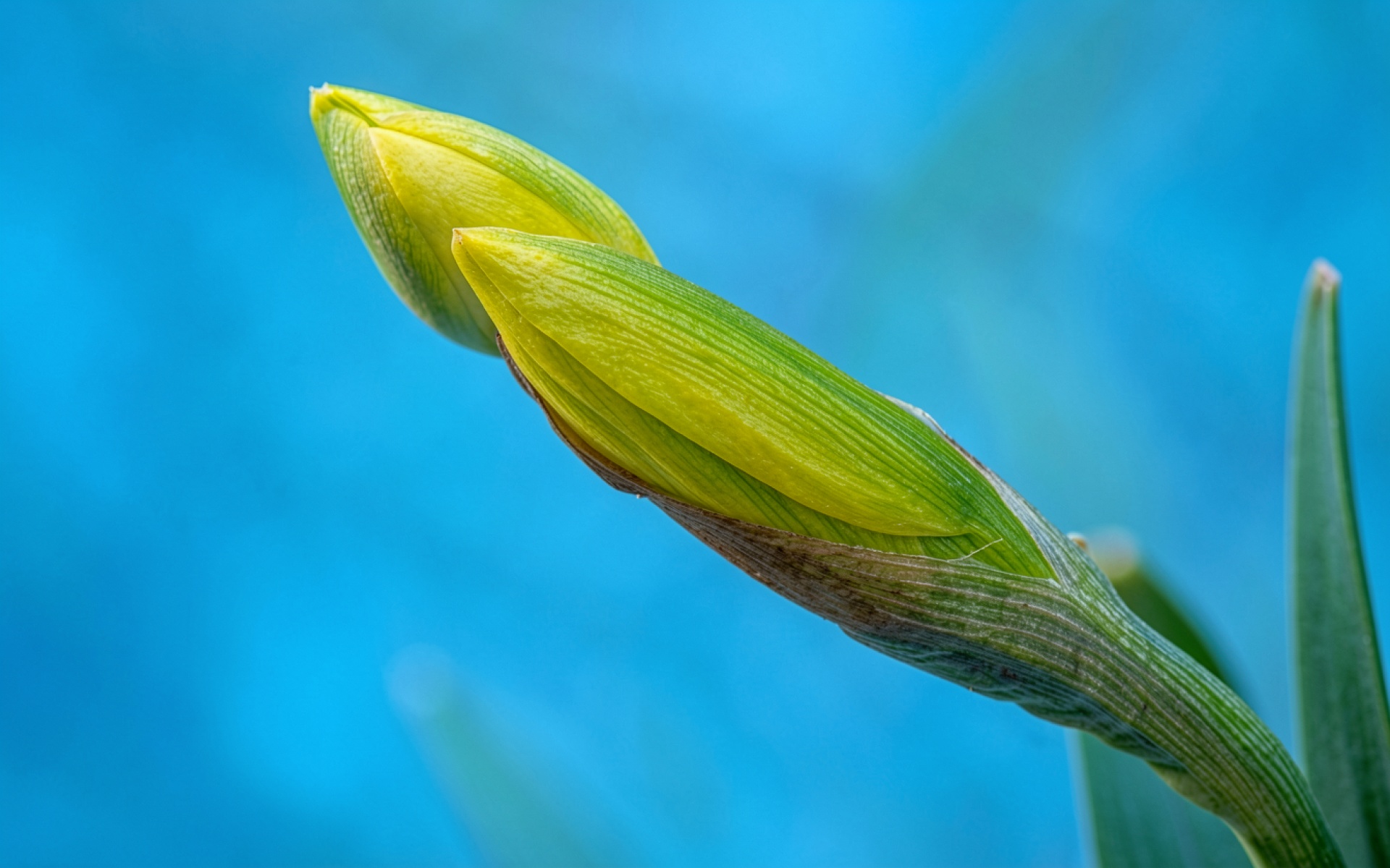 Бутоны ириса желтого цвета на синем фоне