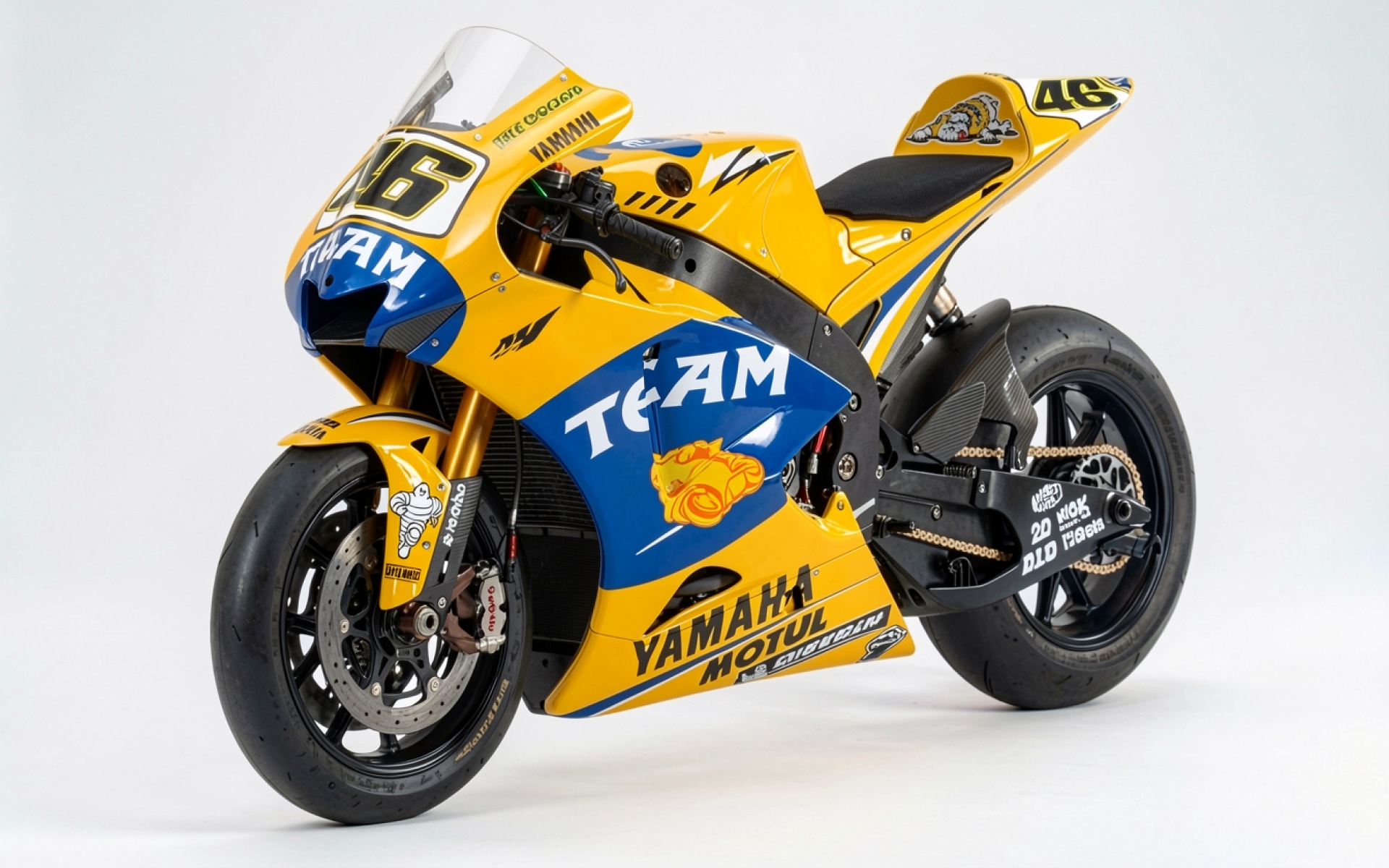 Гоночный мотоцикл Yamaha желтого цвета в студии