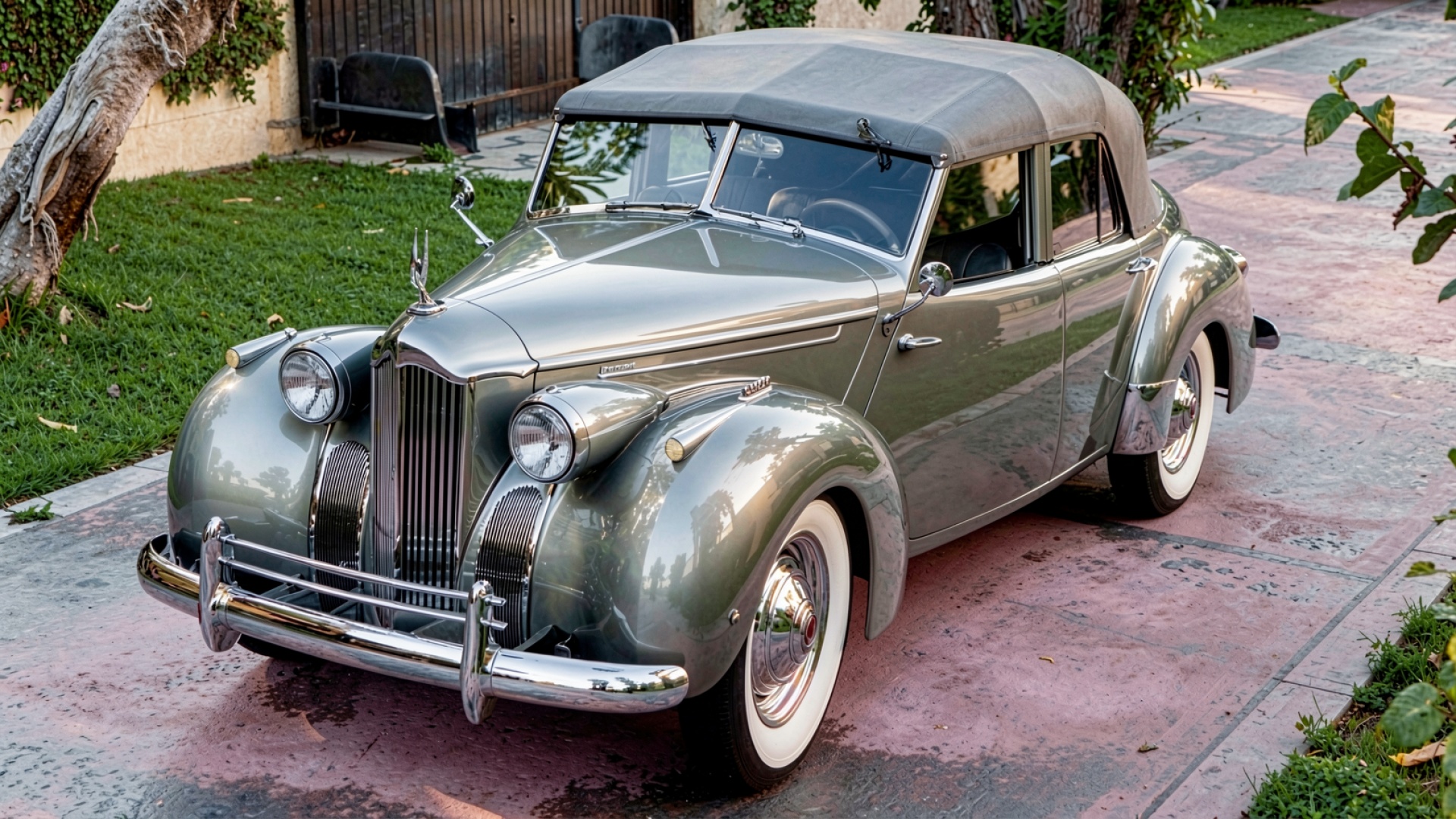 Ретро автомобиль серого цвета на улице