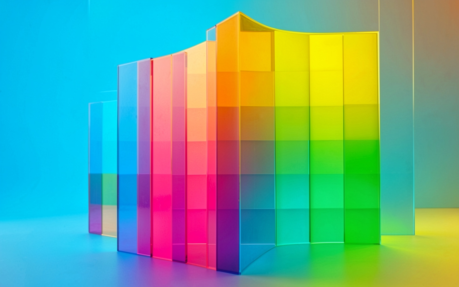 Цветные стеклянные призмы в неоновом освещении