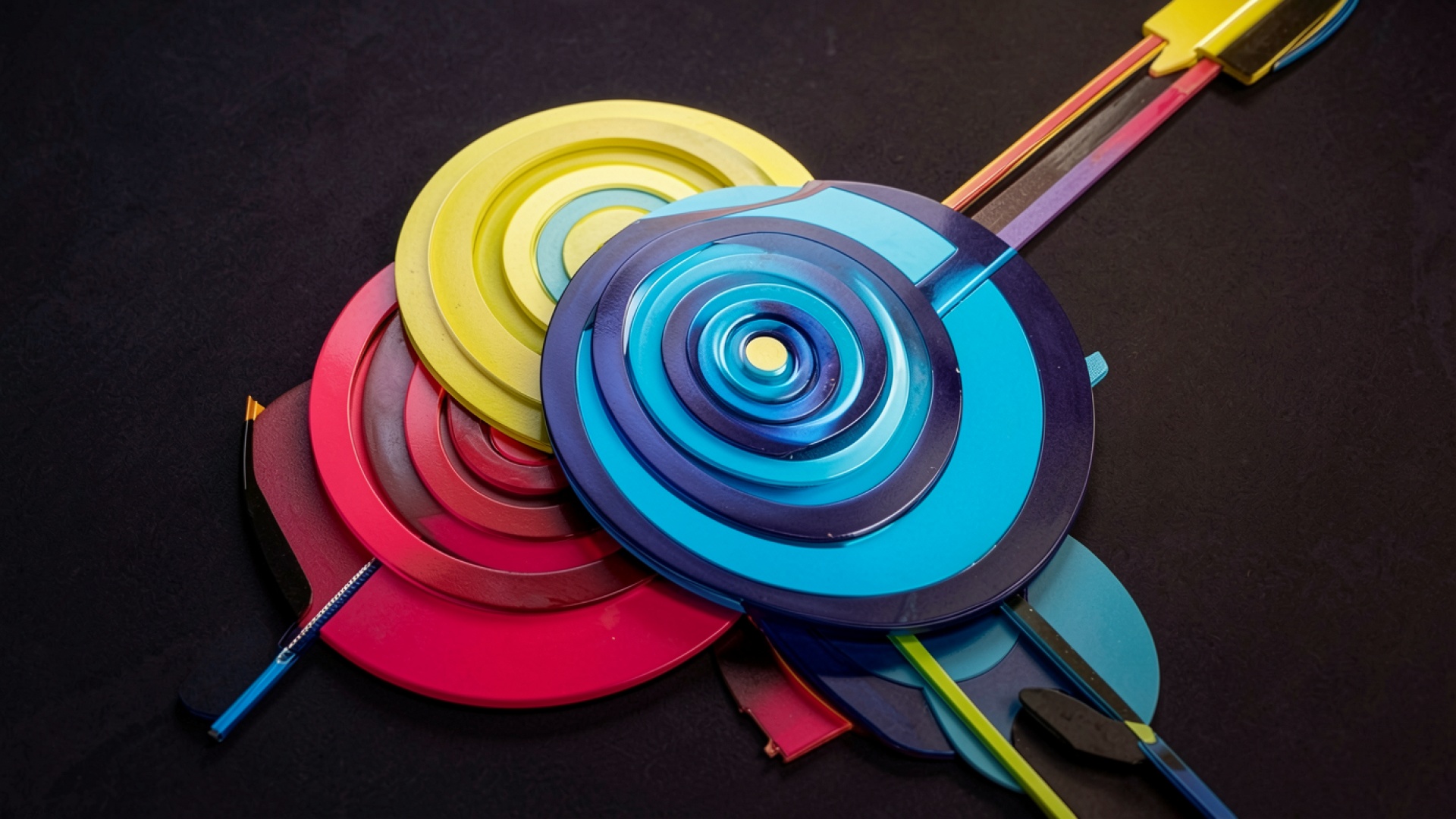 Цветные пластиковые круги на темном фоне