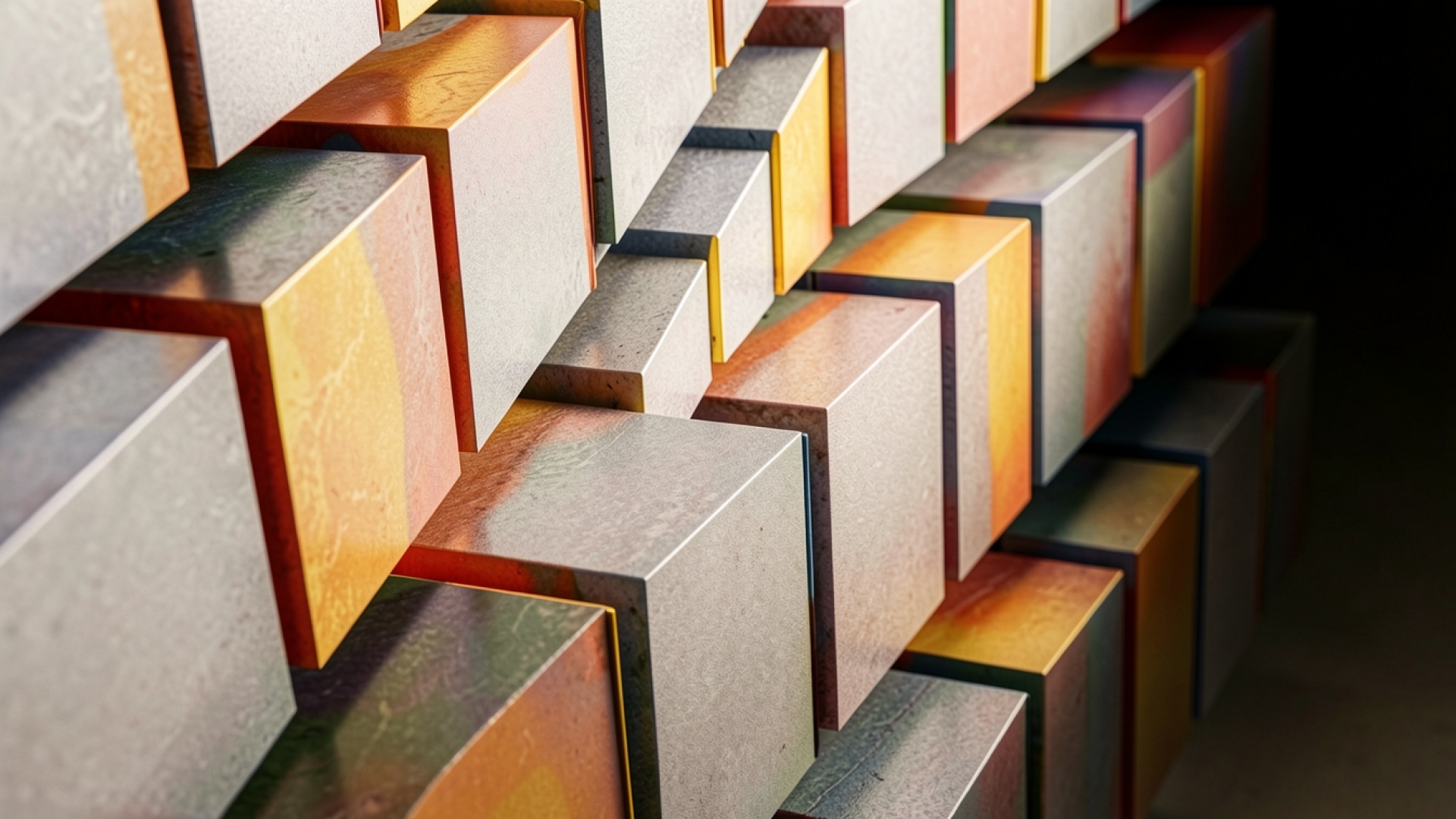 Цветные металлические кубы в темном пространстве