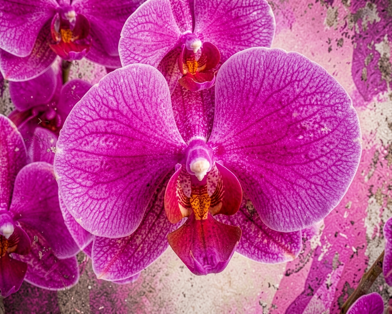 Цветок орхидеи пурпурного цвета на текстурном фоне