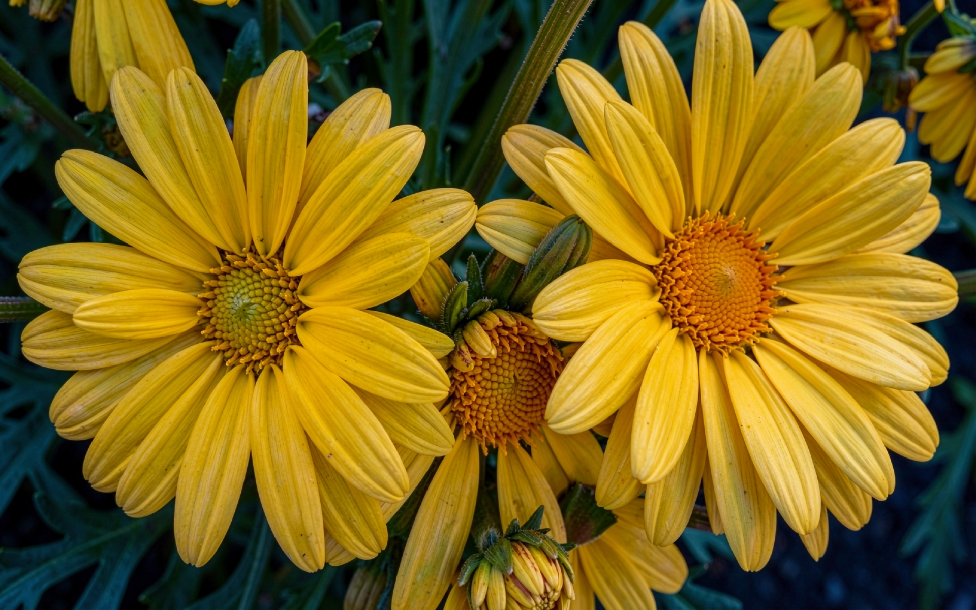 Желтые цветы остеоспермума макросъемка на темном фоне