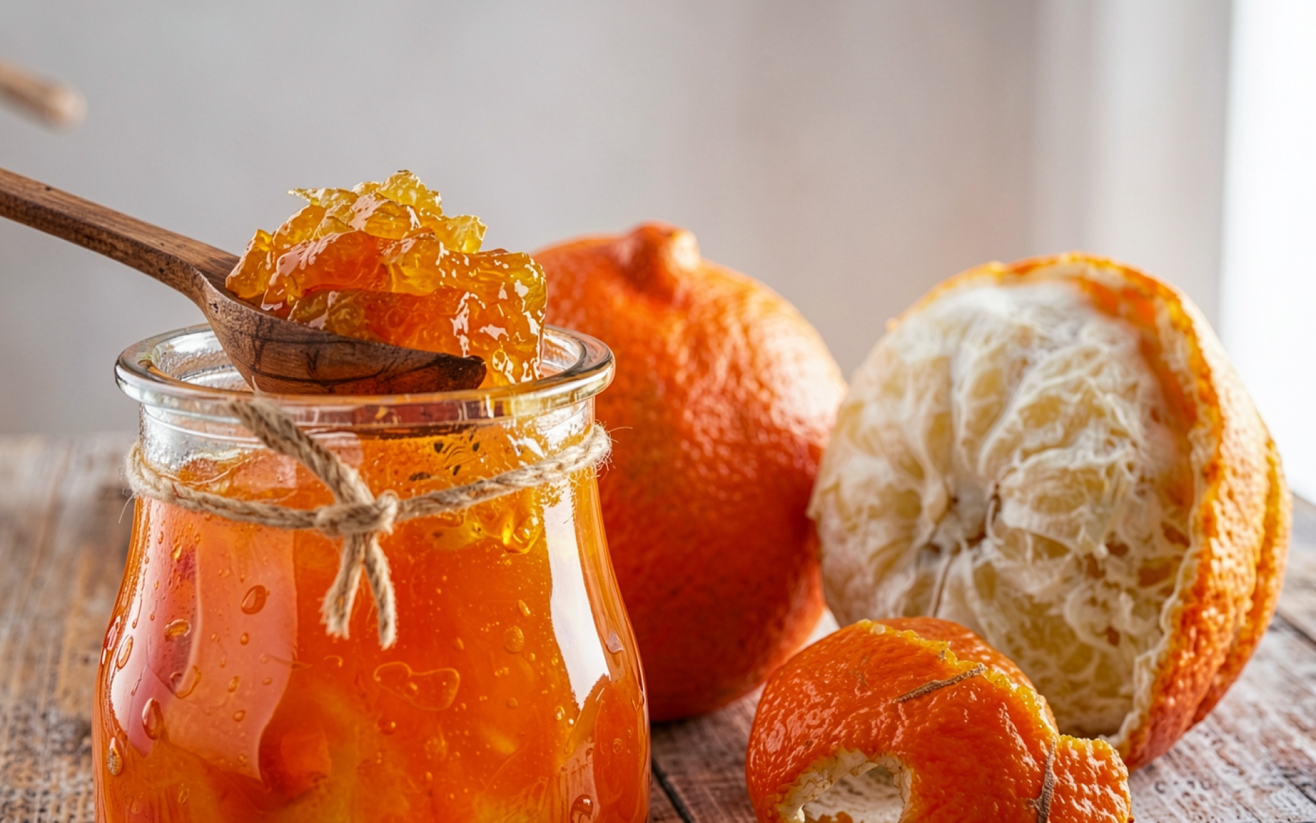 Банка оранжевого джема с цитрусами на дереве