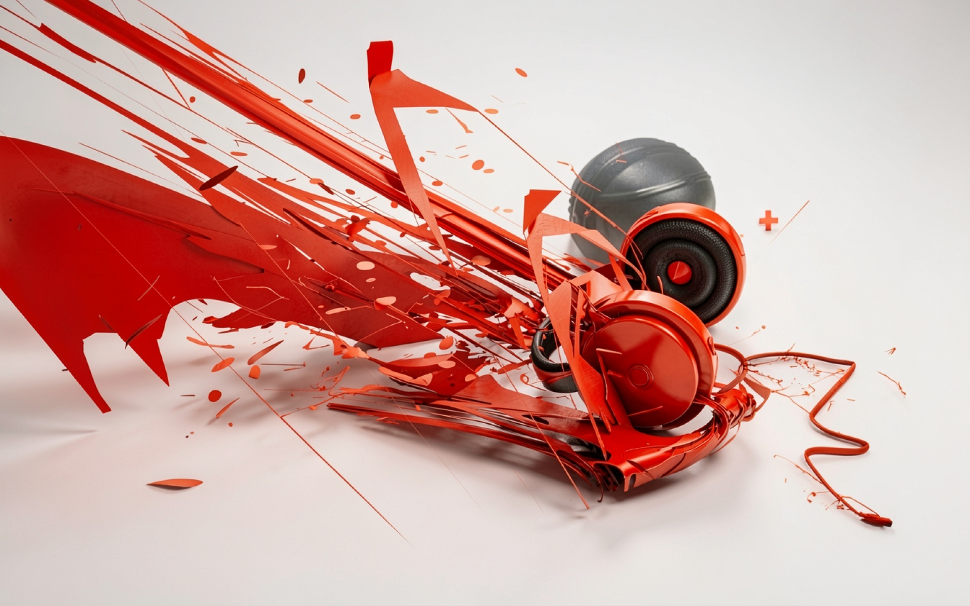 Красные наушники в стиле абстрактного цифрового взрыва