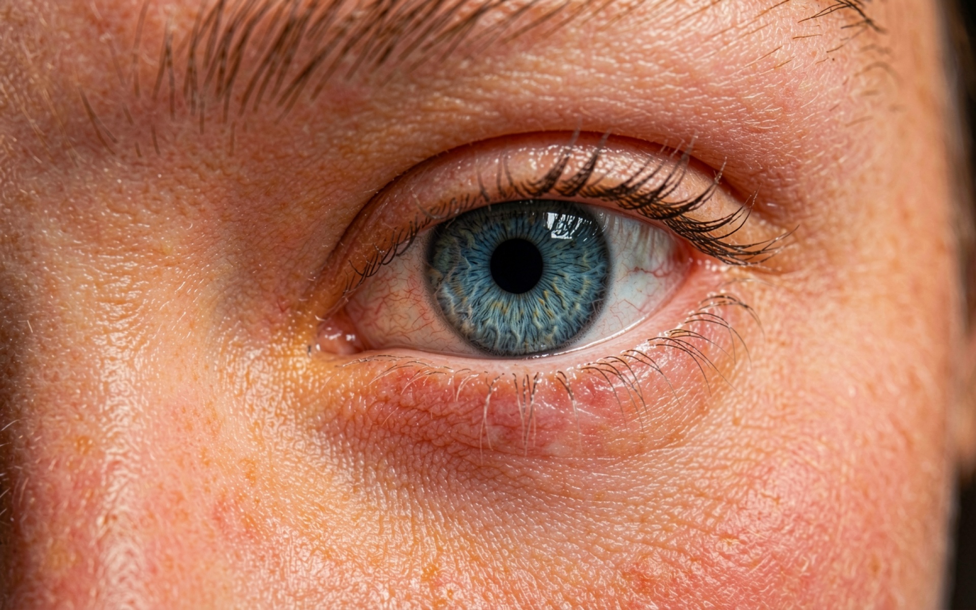 Крупный план голубого глаза человеческого лица