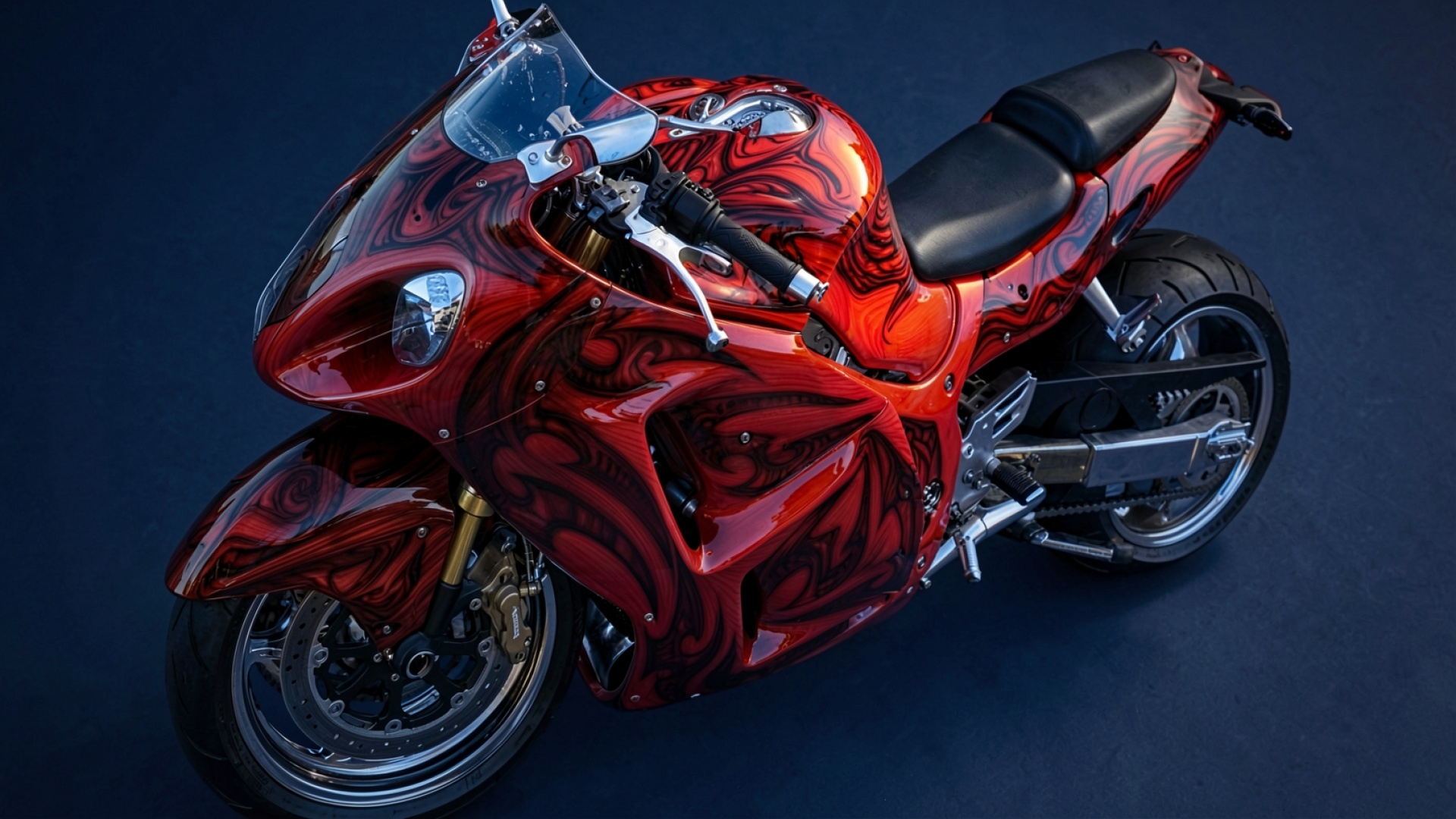 Спортивный мотоцикл красный с черными узорами