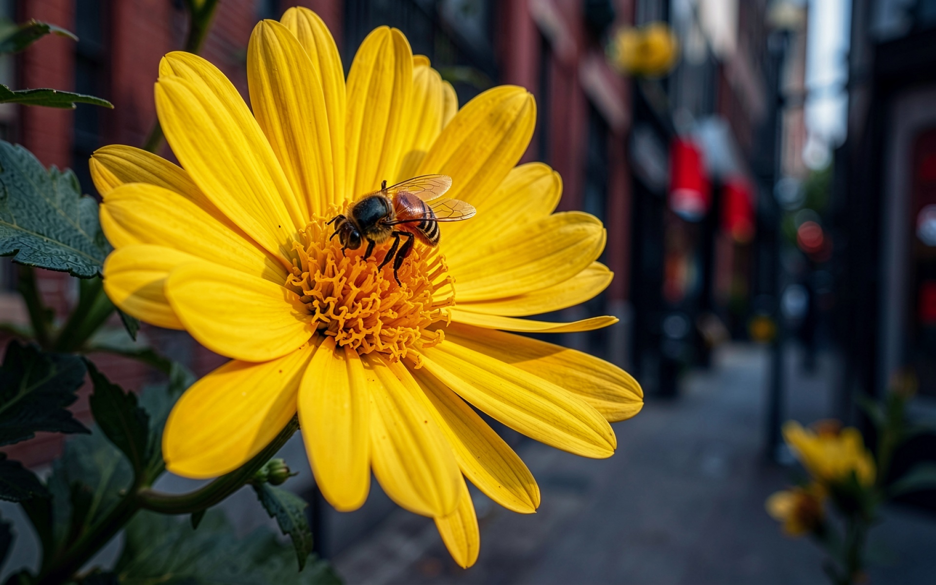 Пчела на желтом цветке городская эстетика