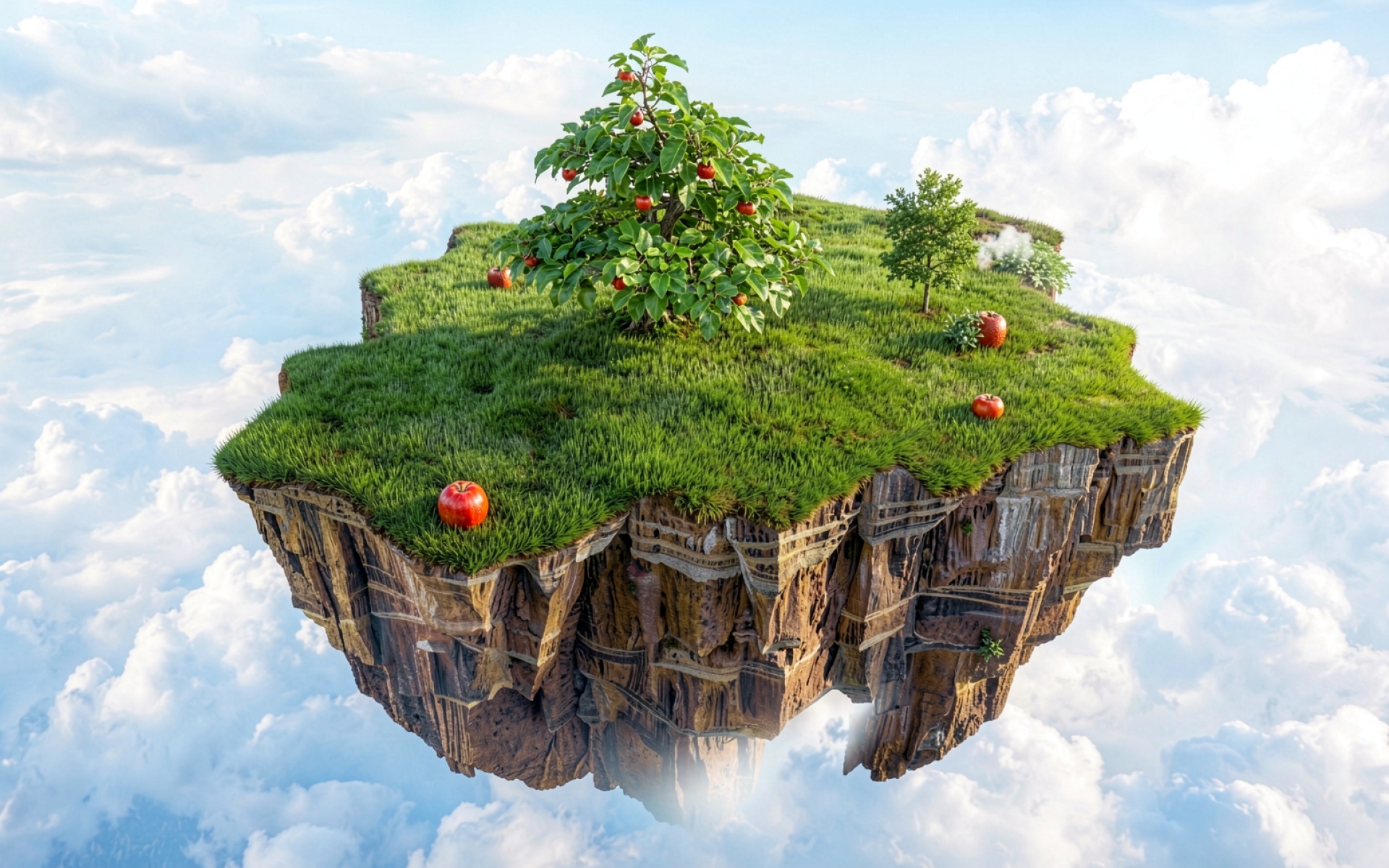 Летающий остров с яблоней в облаках