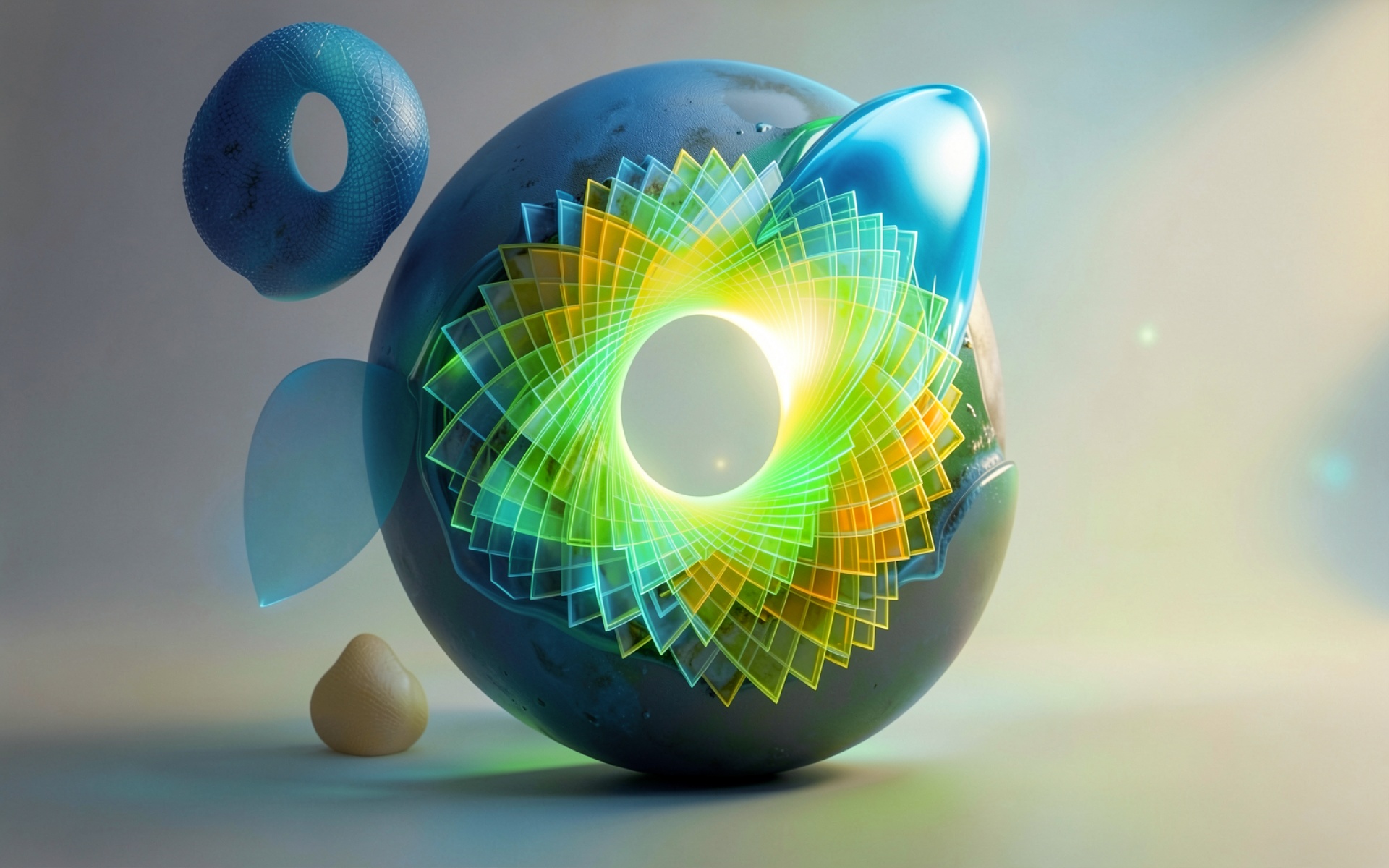 Абстрактная синяя сфера с золотистым геометрическим ядром