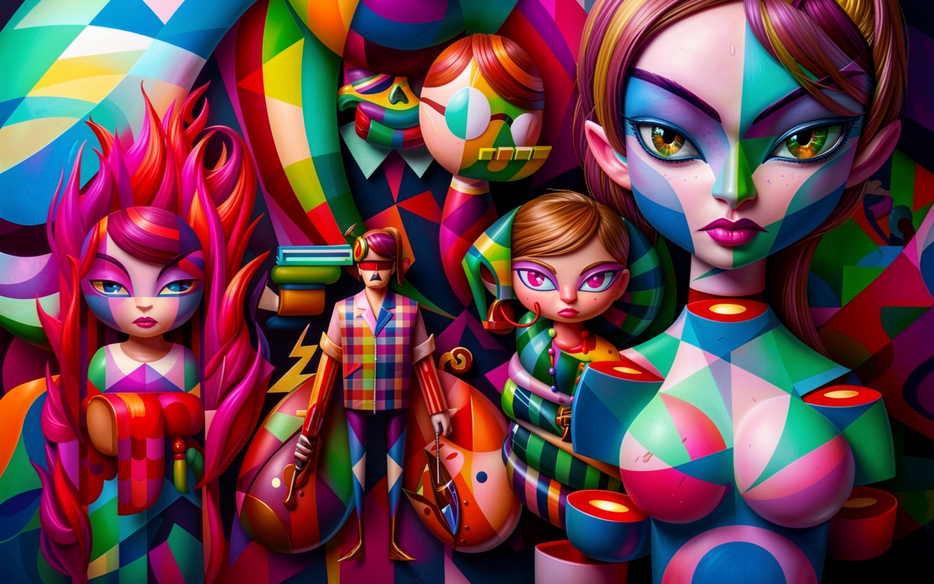 Сюрреалистичные персонажи в стиле яркого неокубизма