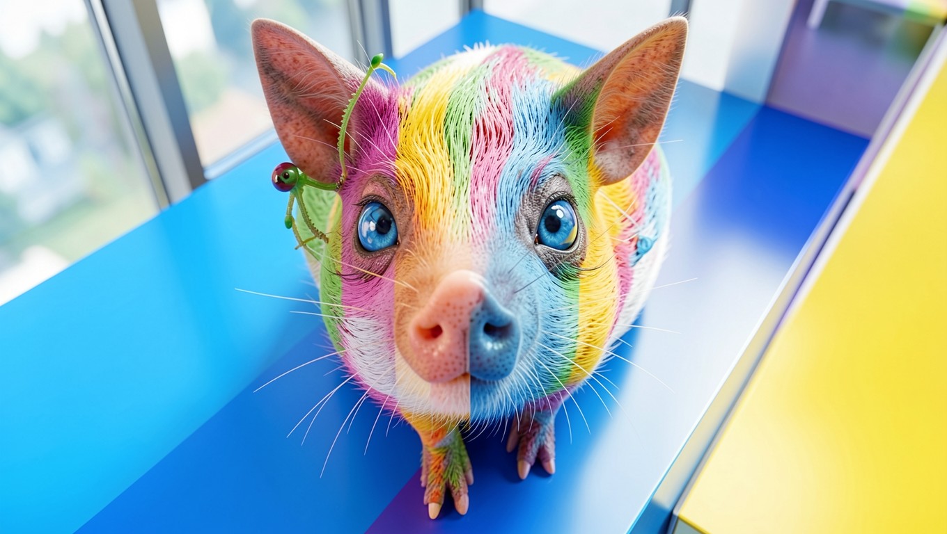 Разноцветный поросенок в ярком современном интерьере