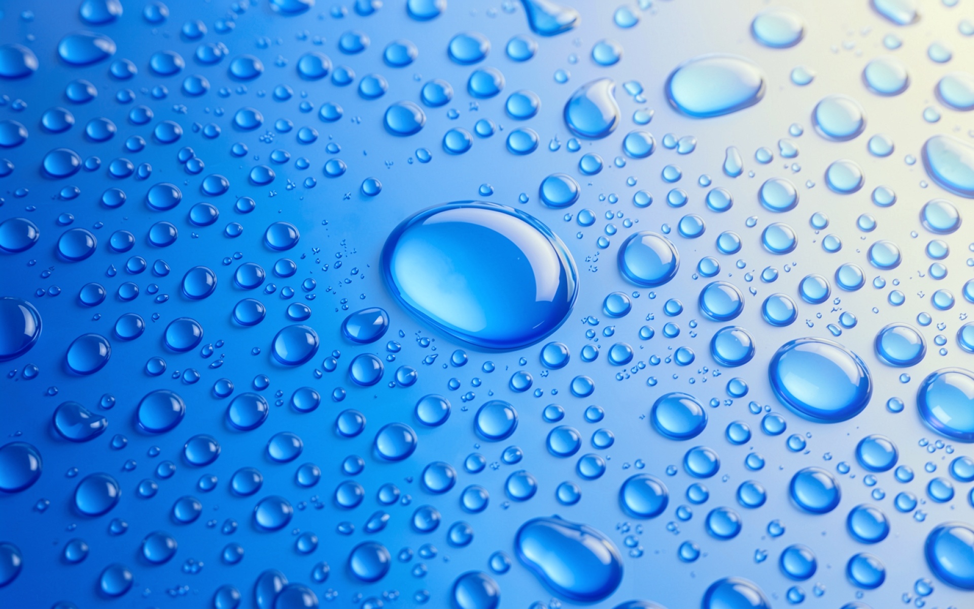 Капли воды на ярко-синем глянцевом фоне
