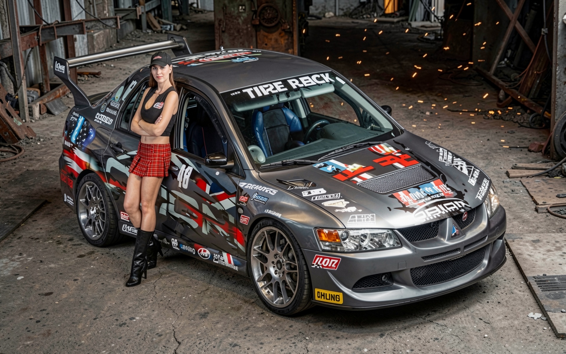 Спортивный автомобиль Mitsubishi Lancer Evolution в гараже