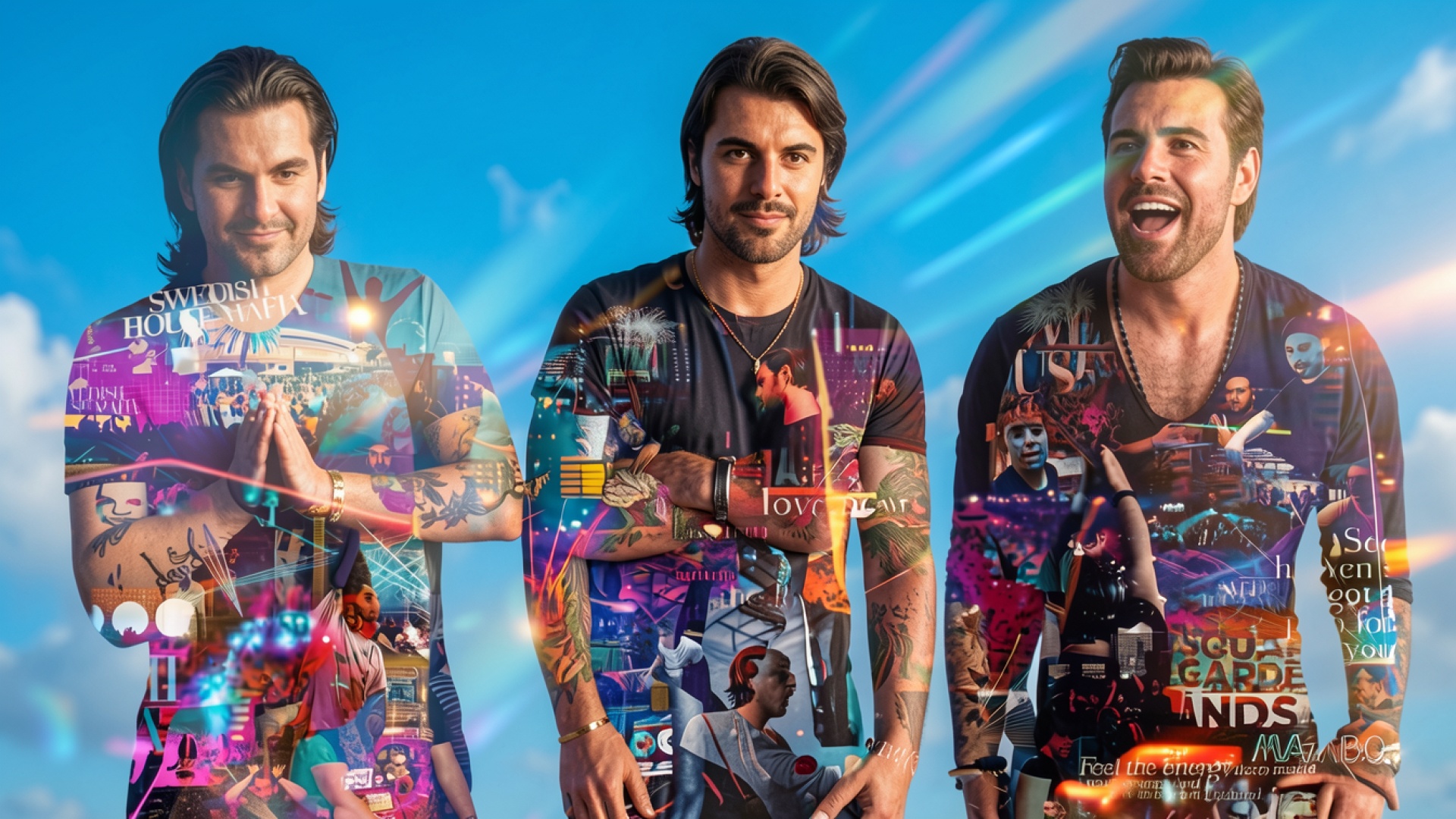 Группа Swedish House Mafia в неоновом стиле