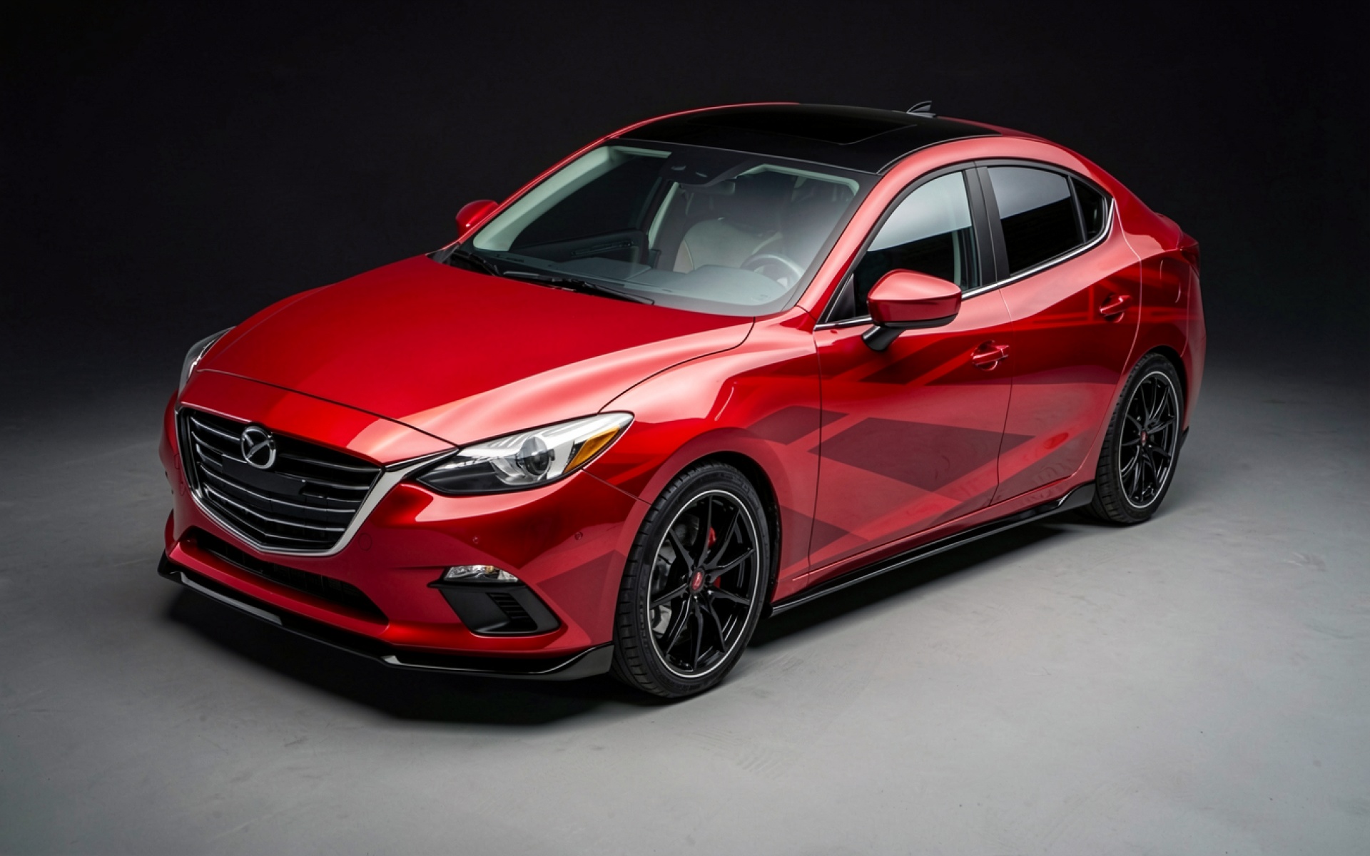 Красный автомобиль Mazda 3 в темной студии