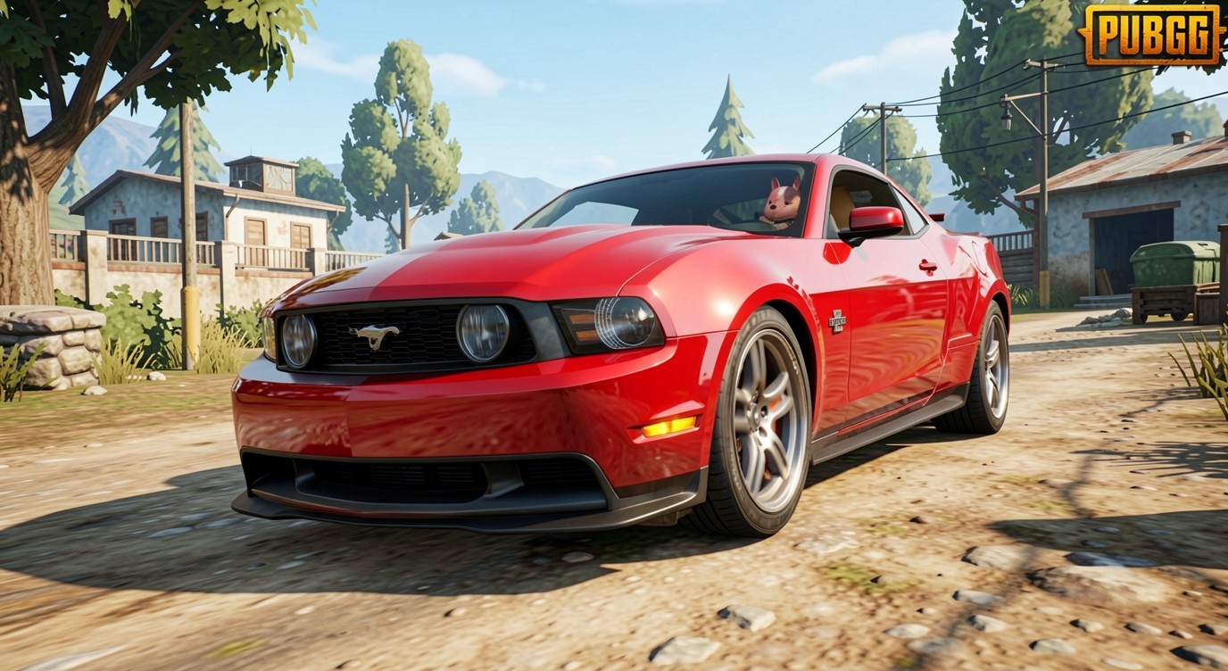Красный автомобиль Ford Mustang на грунтовой дороге