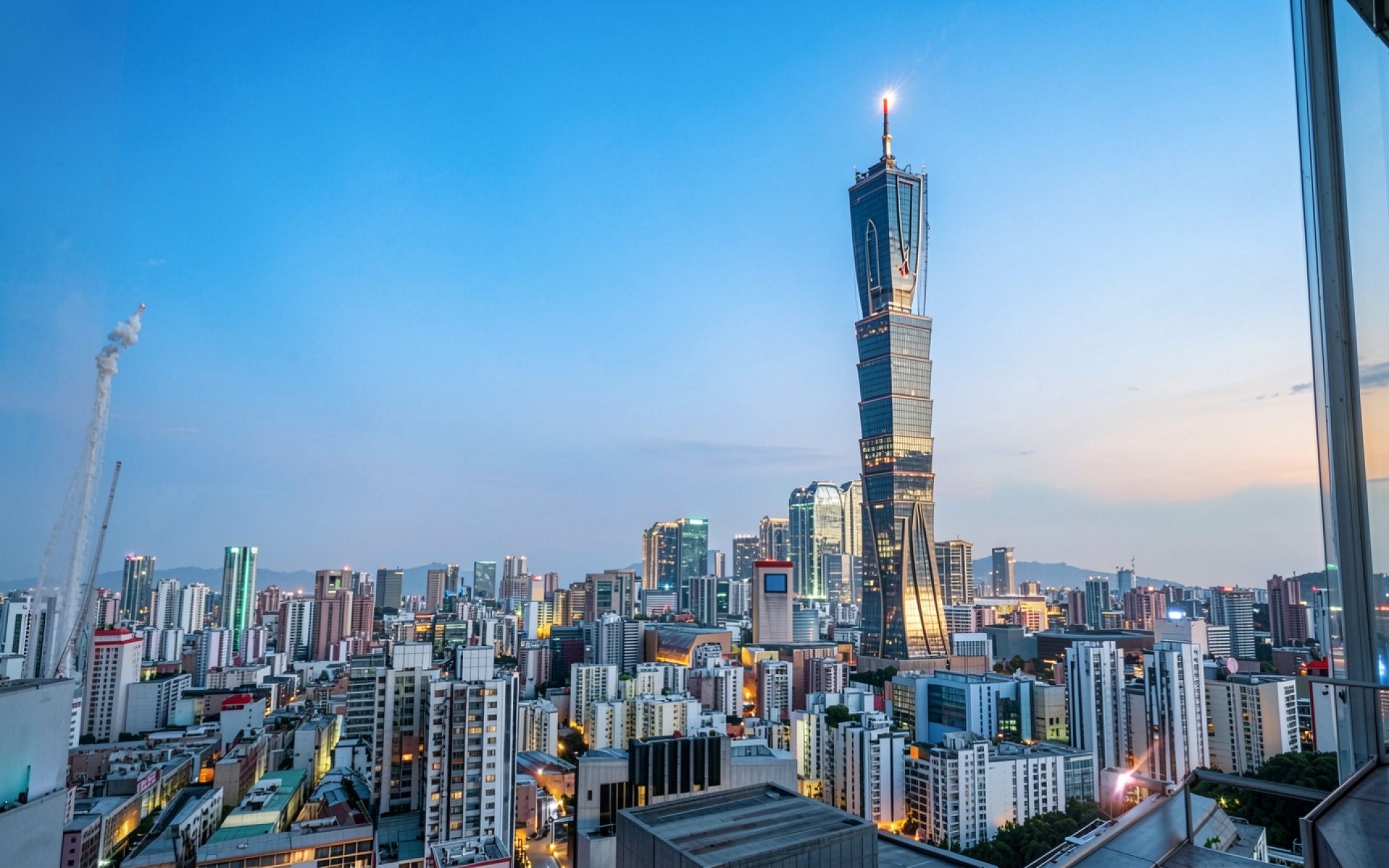 Небоскреб Macau Tower в вечернем городском пейзаже