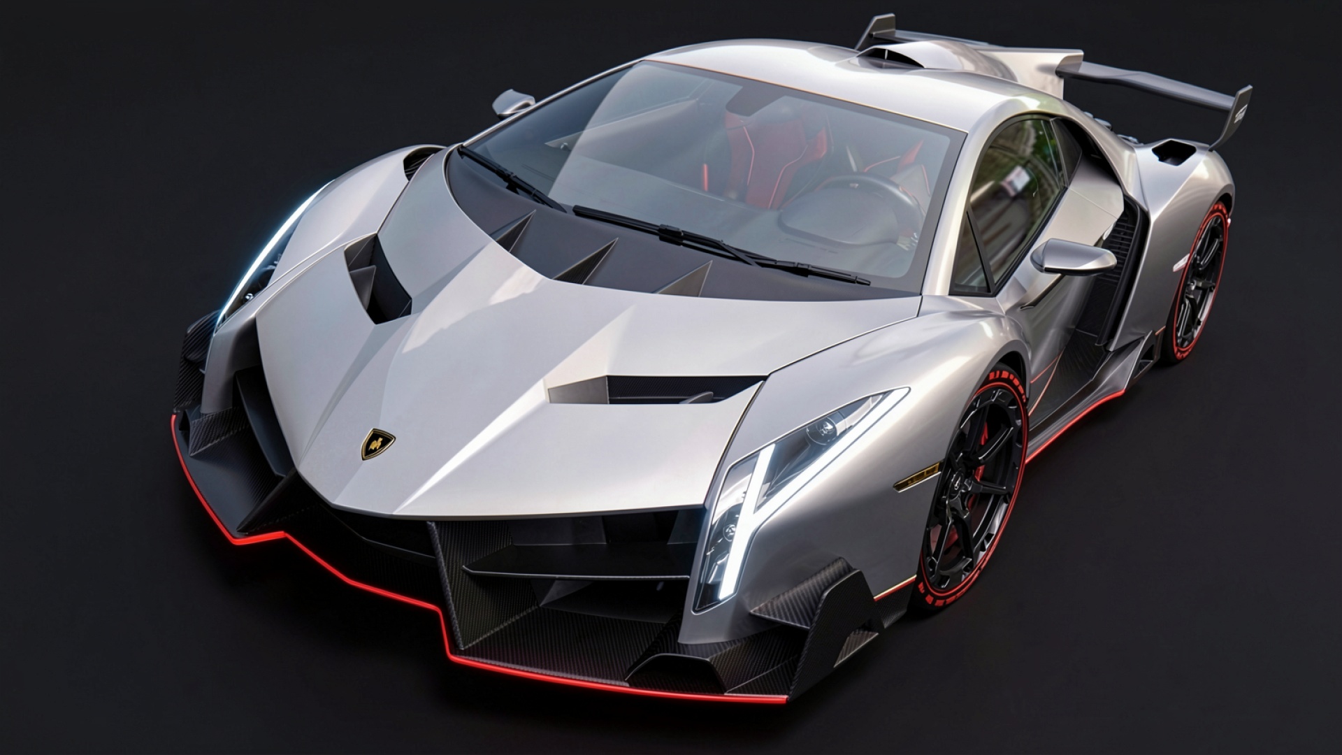 Серебристый гиперкар Lamborghini Veneno в студии