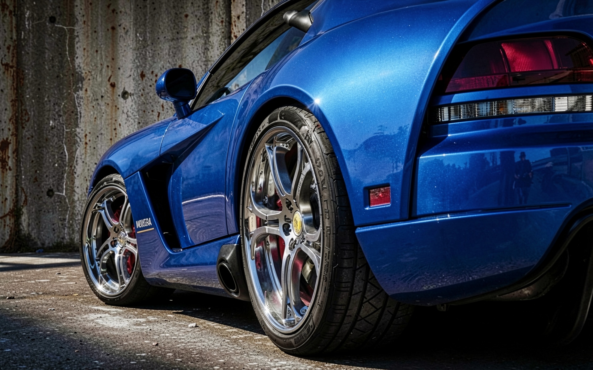 Синий спортивный автомобиль Bugatti Veyron в гараже