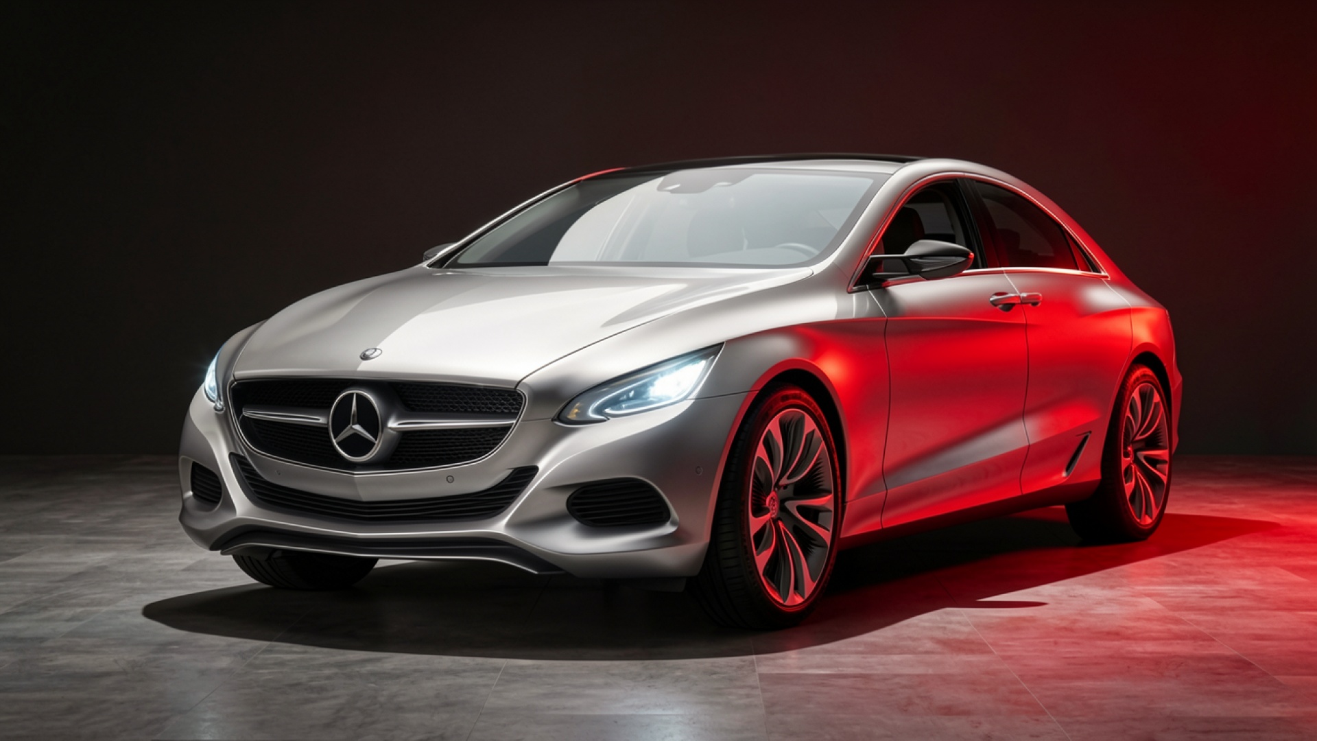 Серебристый Mercedes Concept S Class красный свет