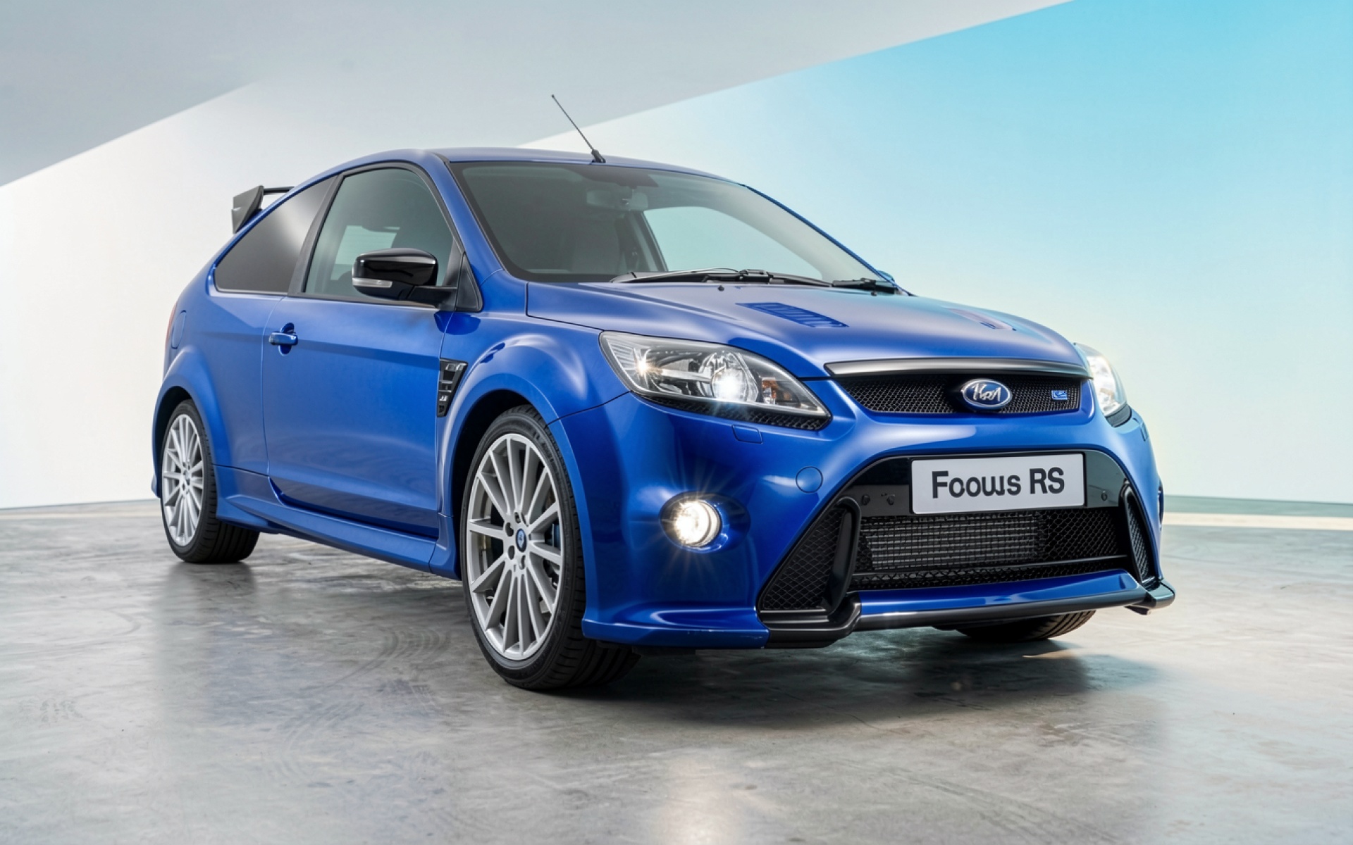 Синий спортивный автомобиль Ford Focus RS в студии
