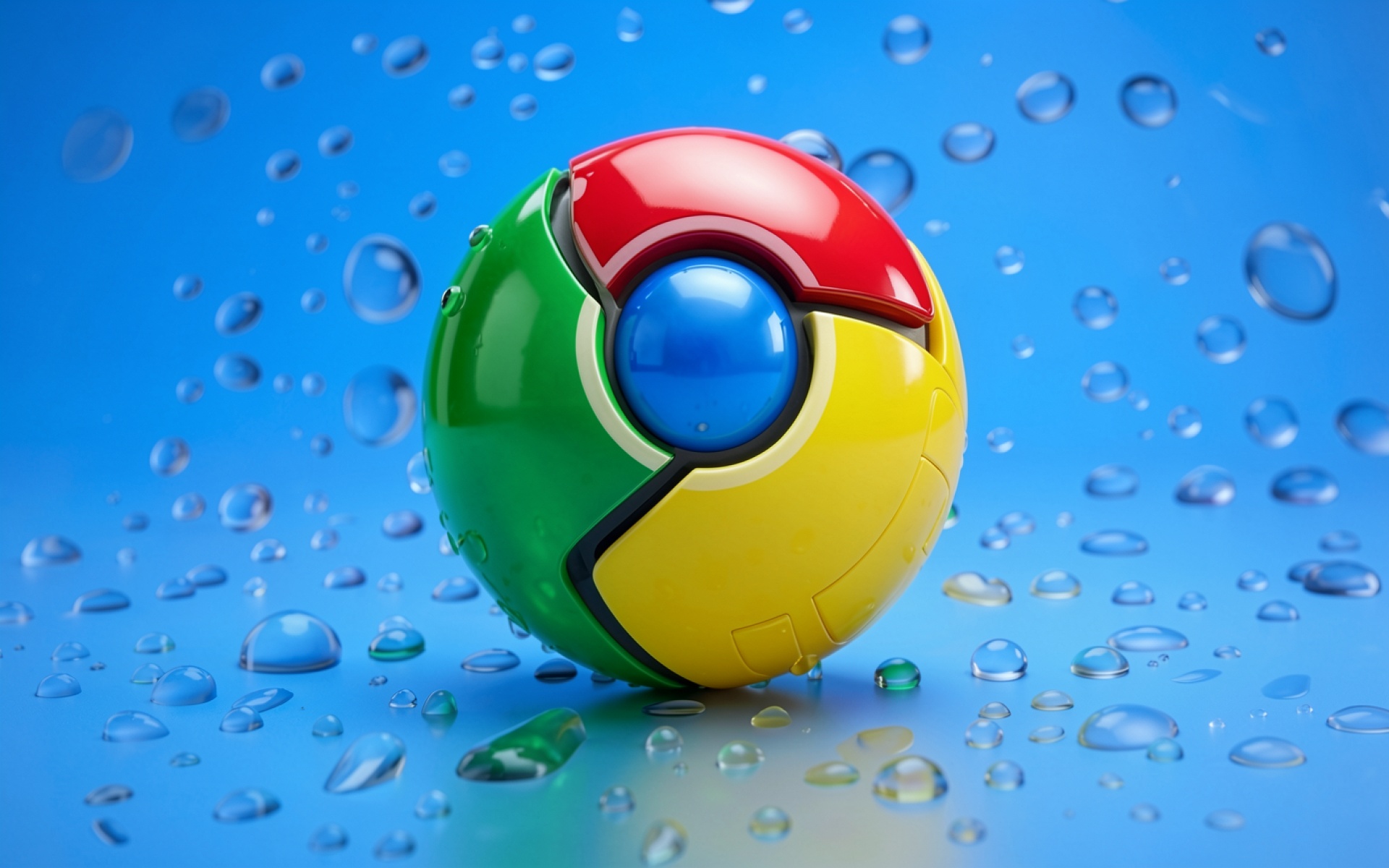 Сфера Google Chrome в каплях воды