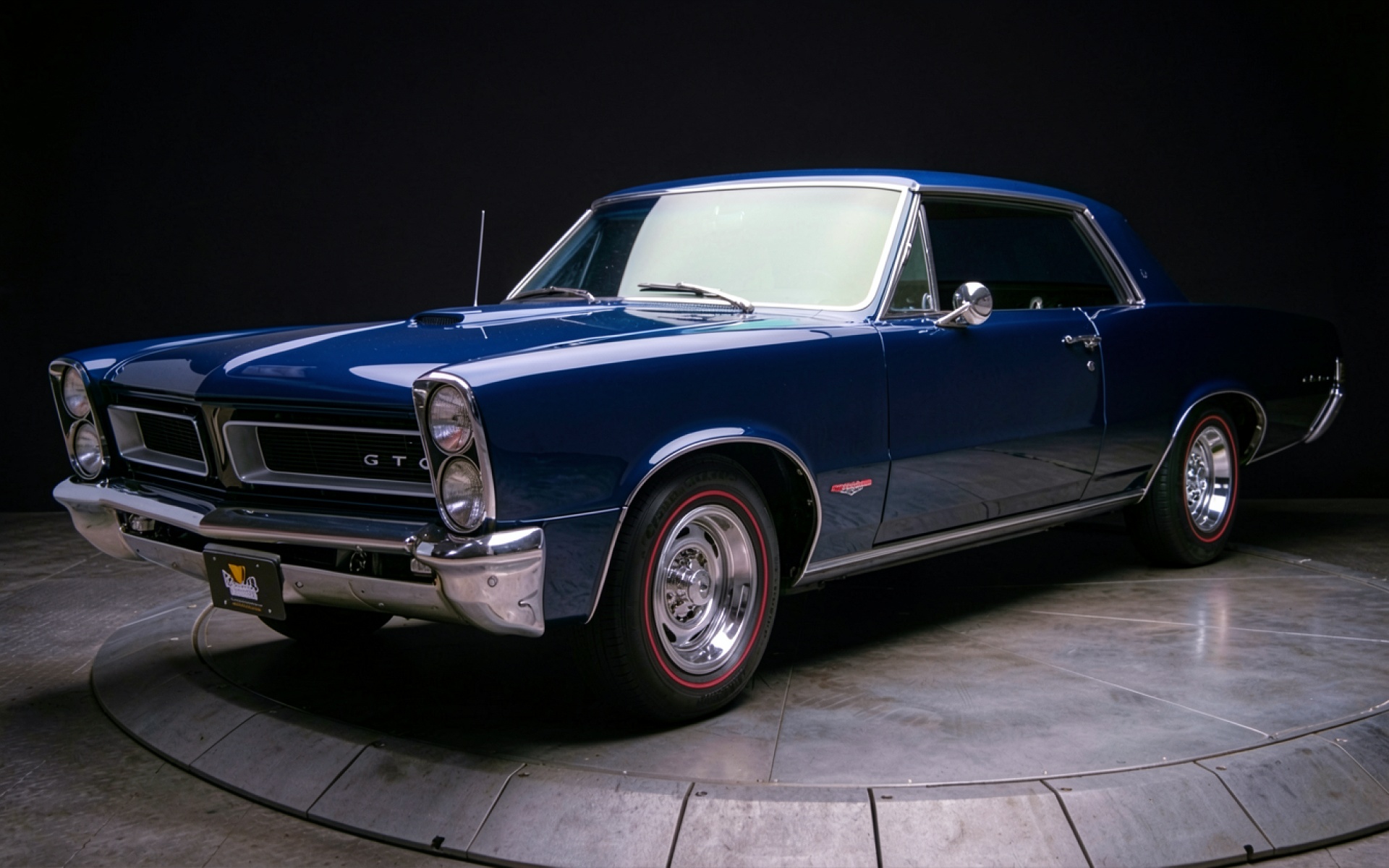 Синий классический автомобиль Pontiac GTO в студии