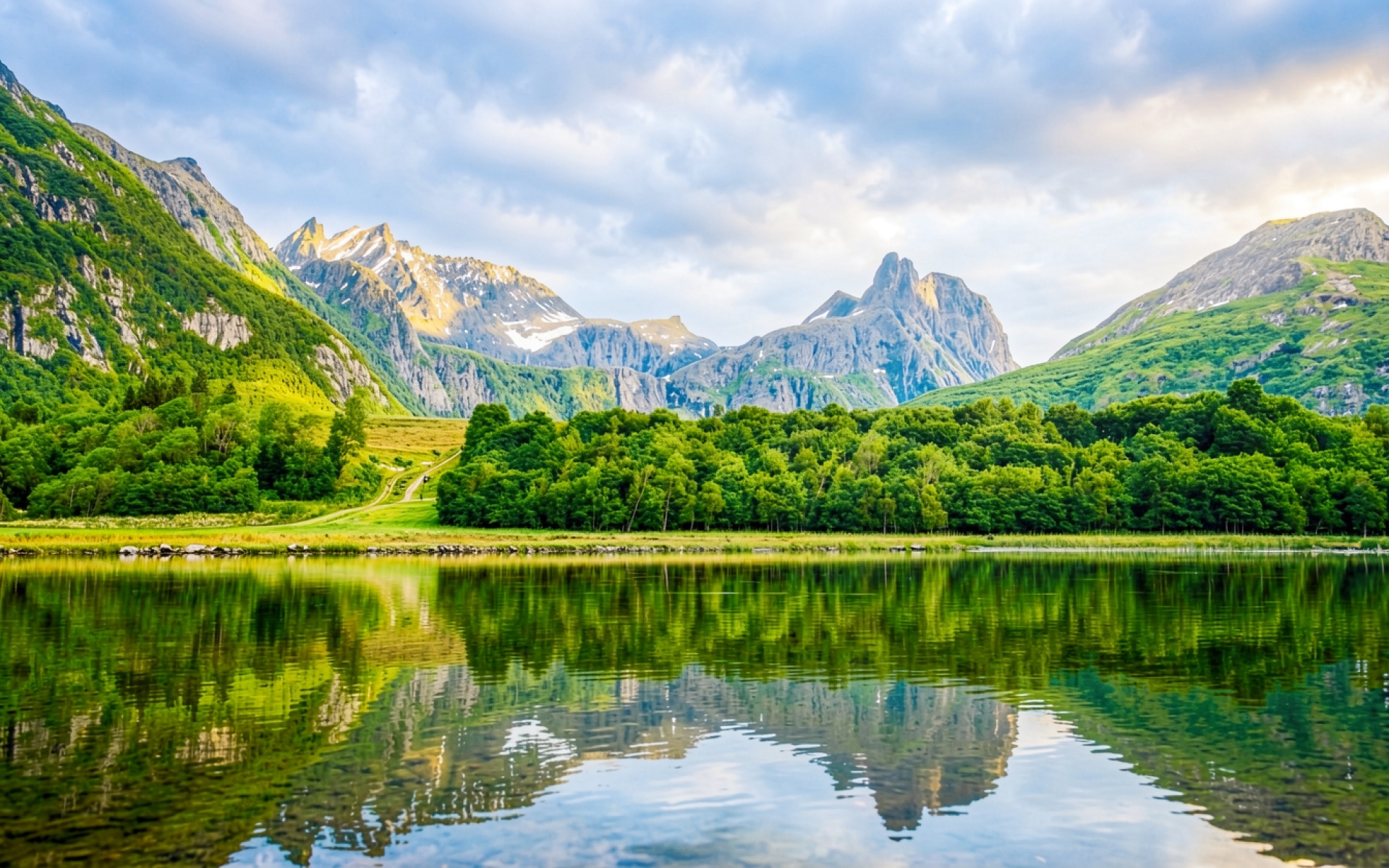Техническое исполнение кадра подчеркивает контраст между острыми гранями скал и мягкой текстурой хвойного леса. Освещение распределено равномерно, создавая плавные градиенты на поверхности воды и четкие блики на вершинах гор. Глубокие тени в складках рельефа добавляют объему, а зеркальное отражение объектов в озере демонстрирует высокую точность цветопередачи. На сайте предусмотрен удобный предпросмотр перед загрузкой для оценки качества на вашем экране.