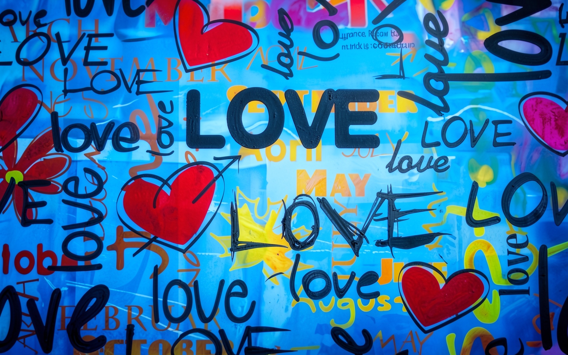 Скачайте с нашего сайта обои Граффити с надписями любовь и сердца синий фон в формате JPG, так как здесь нет полос градиента из-за низкого битрейта.