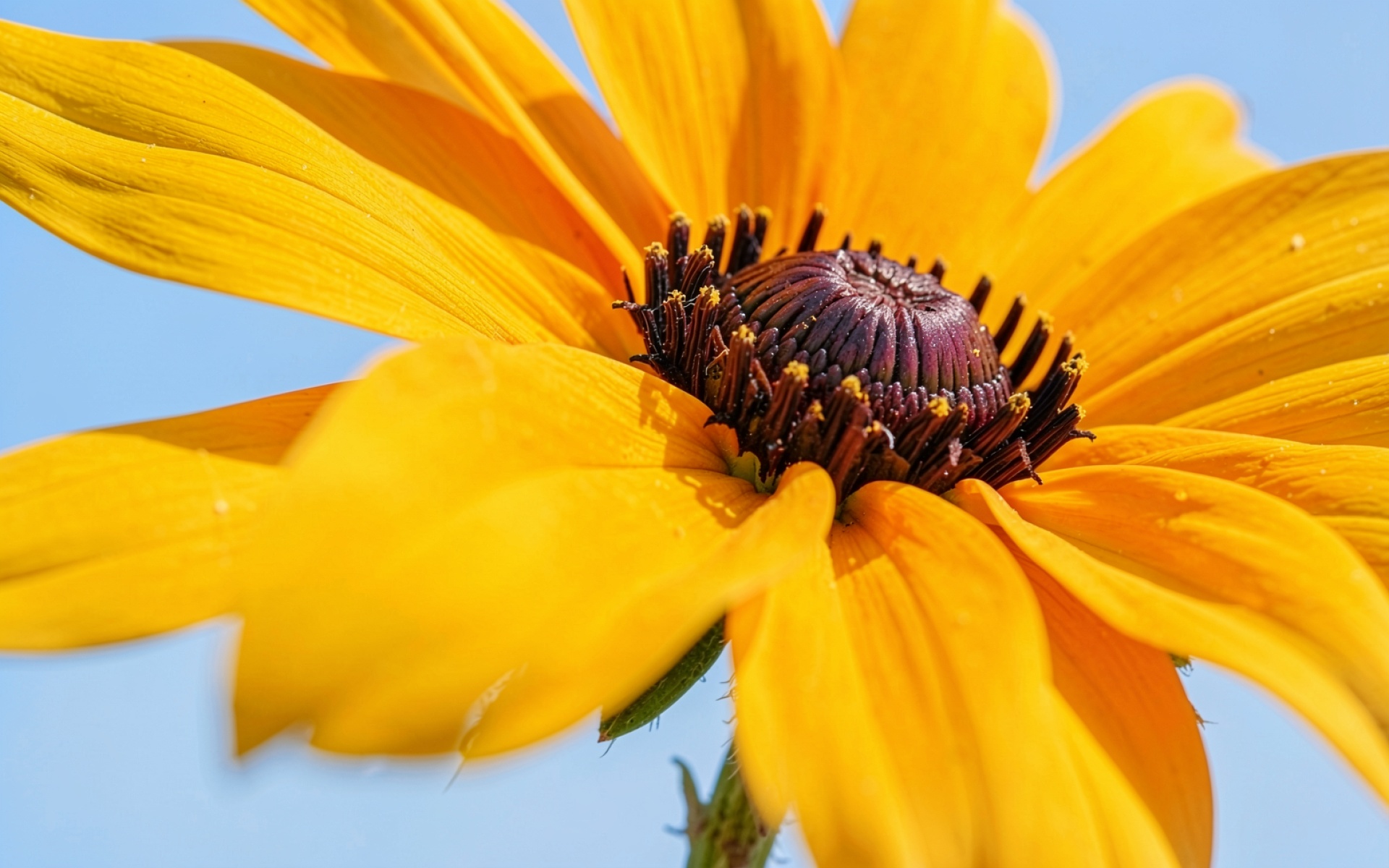Заберите JPG-файл «Желтый цветок рудбекия на голубом фоне» на нашем сайте — и вот обоснование: сохранена полная цветопередача без потери качества.