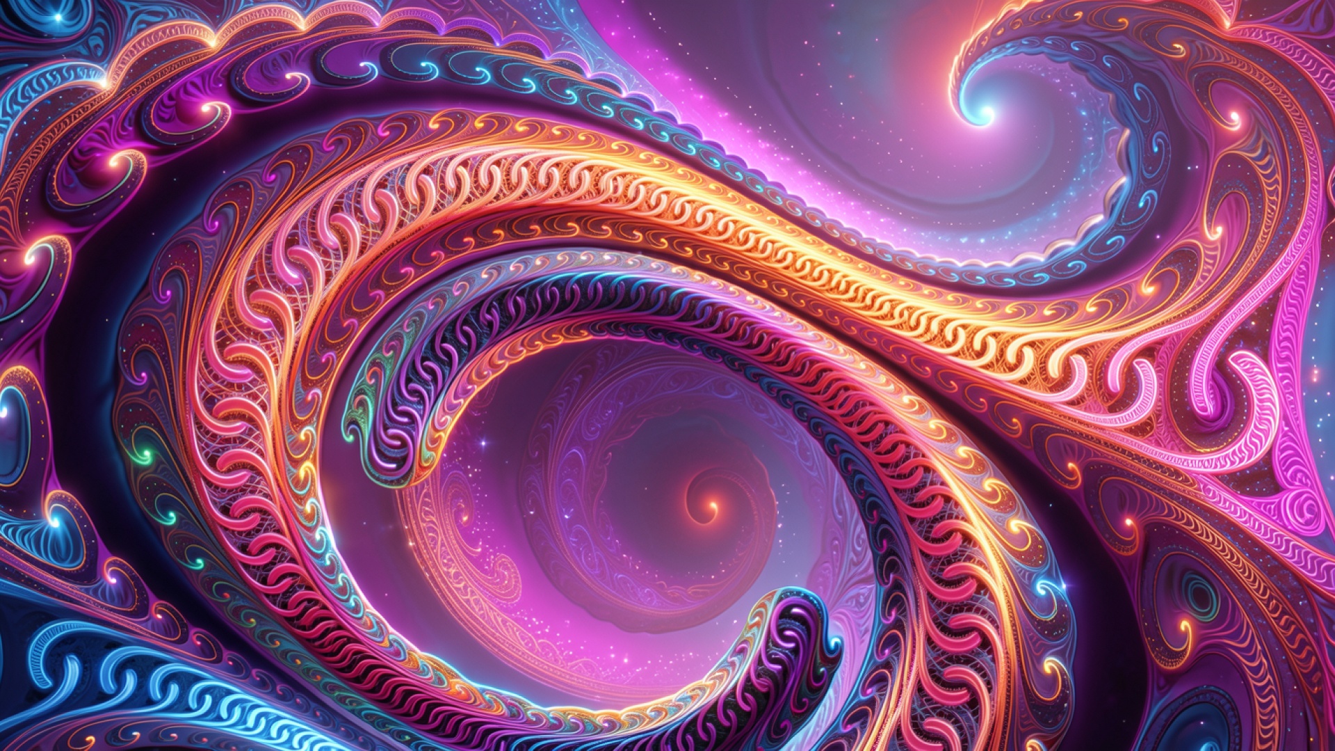 Техническое исполнение данной композиции опирается на сложные градиенты между глубоким пурпурным и ярко-золотым цветами. Текстуры завитков имитируют органические формы с четкими световыми акцентами по краям линий, что создает эффект объема. Мягкие тени в центре воронки контрастируют с яркими бликами на внешних дугах, а плавные переходы фона подчеркивают динамику движения. На сайте доступен удобный предпросмотр перед загрузкой для оценки качества отображения на вашем экране.
