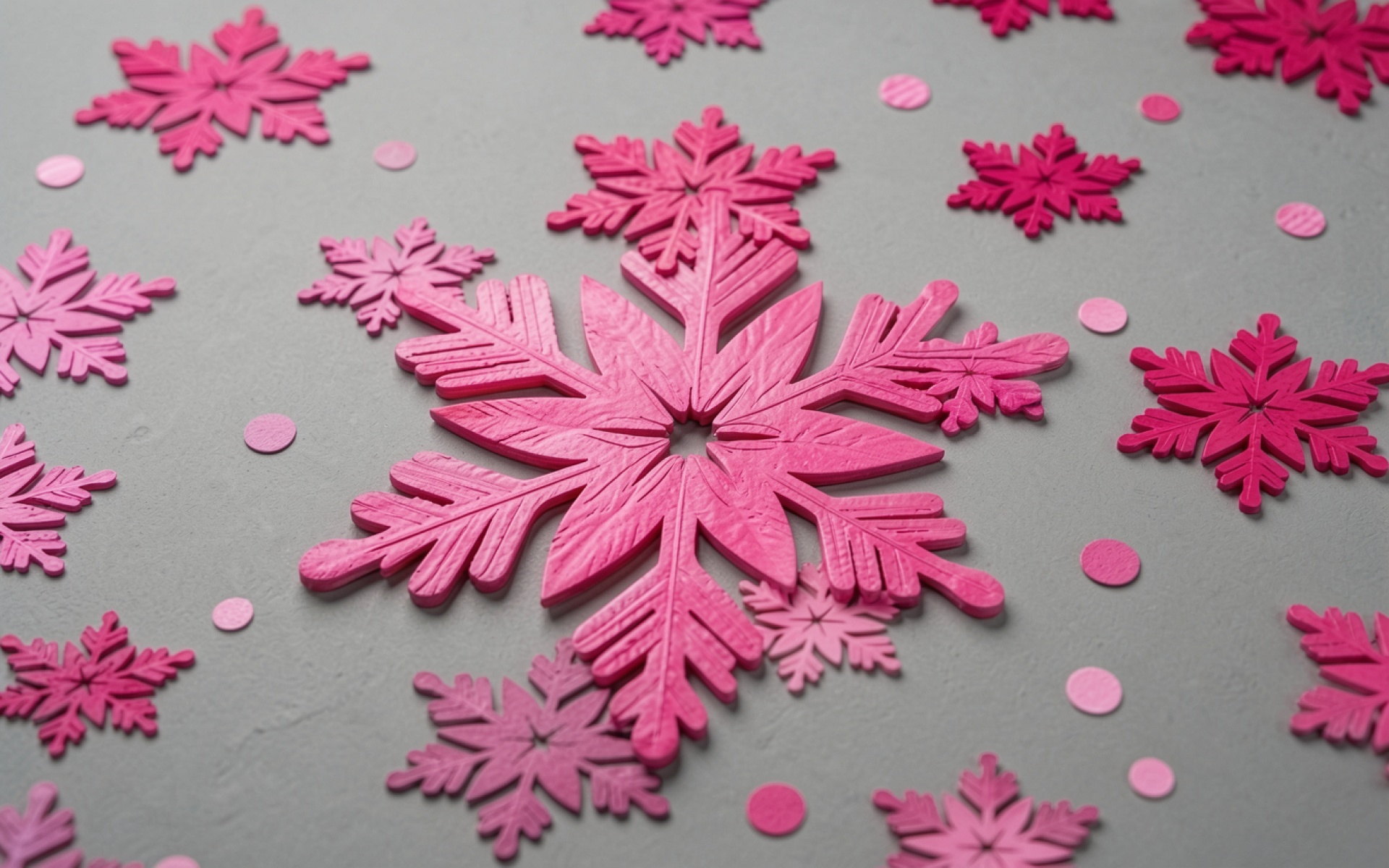 Согласно данным из color-science.org, розовый цвет в данной интенсивности воспринимается человеческим глазом как динамичный и эмоциональный акцент на нейтральном сером фоне за счет высокого цветового контраста. Нажмите кнопку скачивания, чтобы установить эти обои со снежинками на ваш ПК или телефон прямо сейчас.