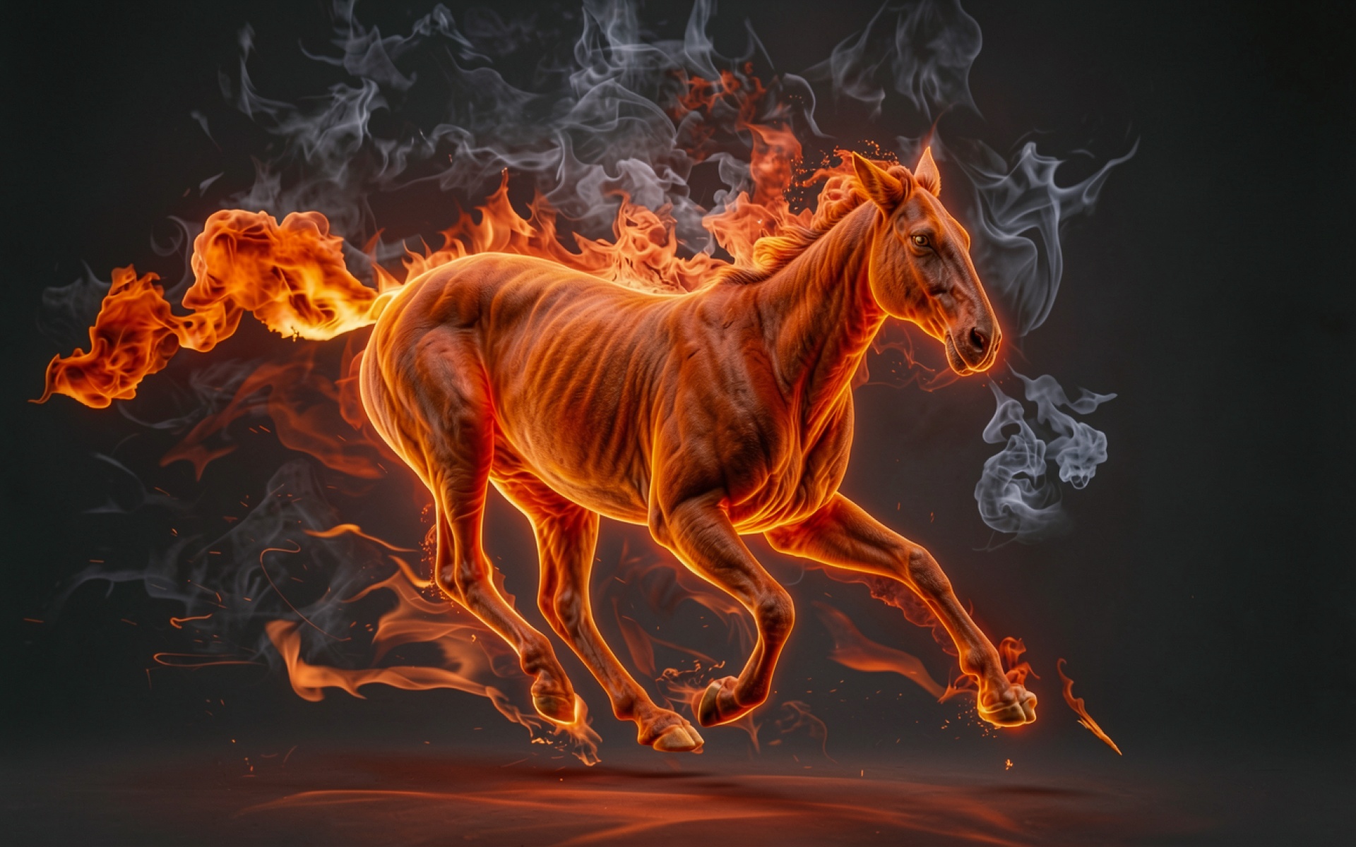 Загрузка JPG обоев Огненный конь в темном дымчатом пространстве с нашего сайта необходима, так как только этот JPG сохраняет метаданные цветокоррекции.