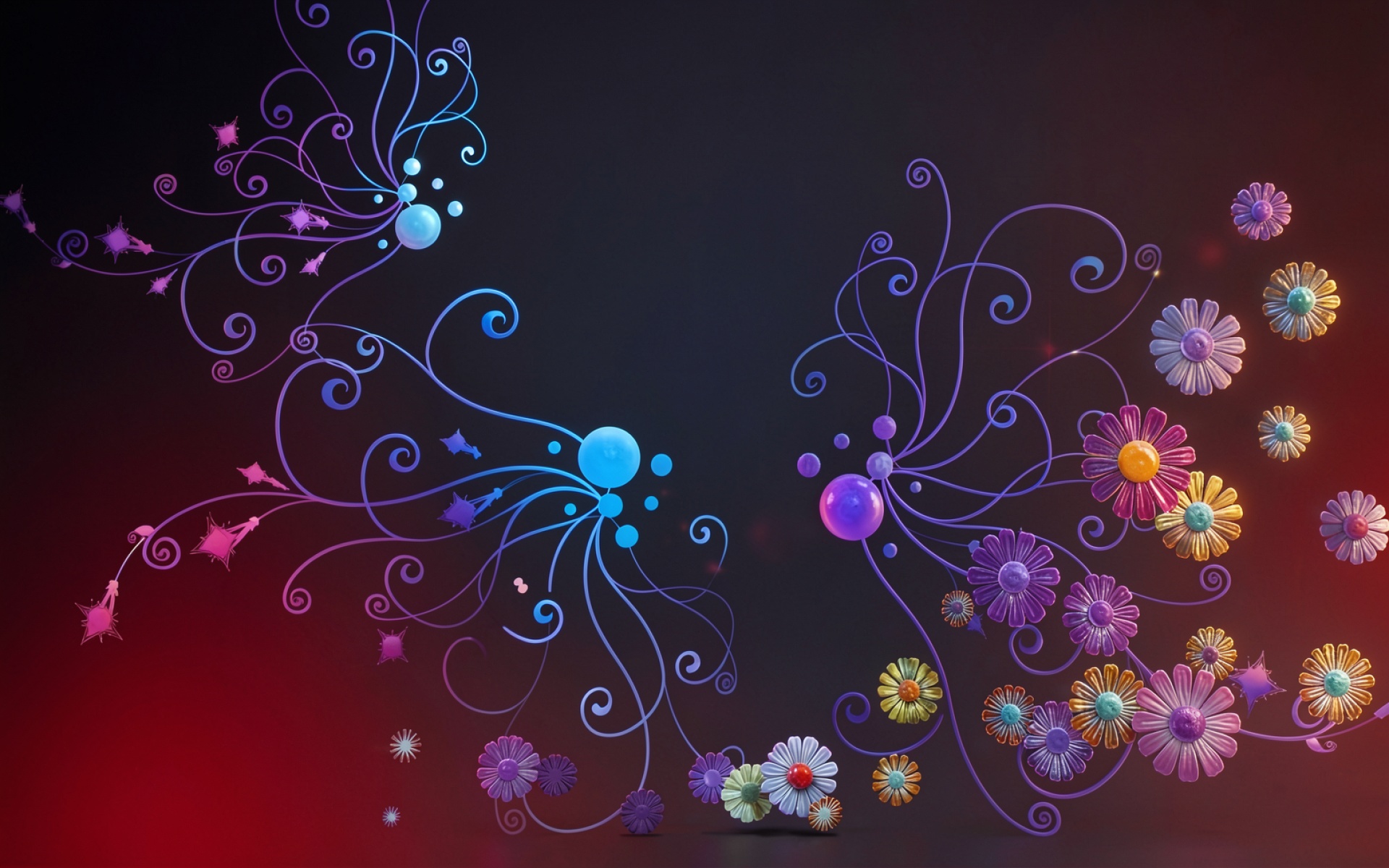 Абстрактные неоновые цветы фиолетовый синий фон обои